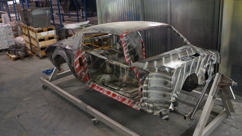 Så här såg min kaross ut när jag lämnade in den. Glöm underredesmassa osv, sånt måste bort innan. Vanlig färg kan dock sitta kvar. Min var lite väl ren redan från början egentligen... Hade jag haft lite tålamod, hade jag nog kunnat kört den med roterande stålborste istället.
