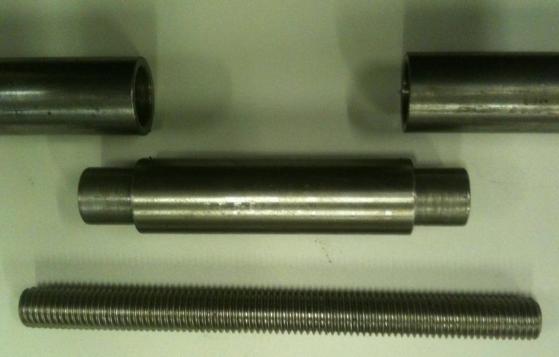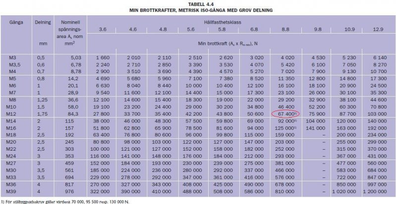 Jag har breddat min bil 72mm (flytta isär bärarmarna) och behöver även bedda kuggstången motsvarande längd för att behålla styrgeometrin. Jag har kapat kuggstångsaxeln på mitten och gängat M12 i vardera ende. Dessutom har jag svarvat en distans på just 72mm med ansatser som passar emot axeländarna. Alltsammans har jag tänkt att dra samman med en gängstång kvalitet 8.8 och limma med cylindrisk fastsättning. Axelns ytterdiameter är 20mm (Bilen är en mini -75 och har hyfsat låg vikt.) Gängstångens brottgräns är 67 400N enl tabell
