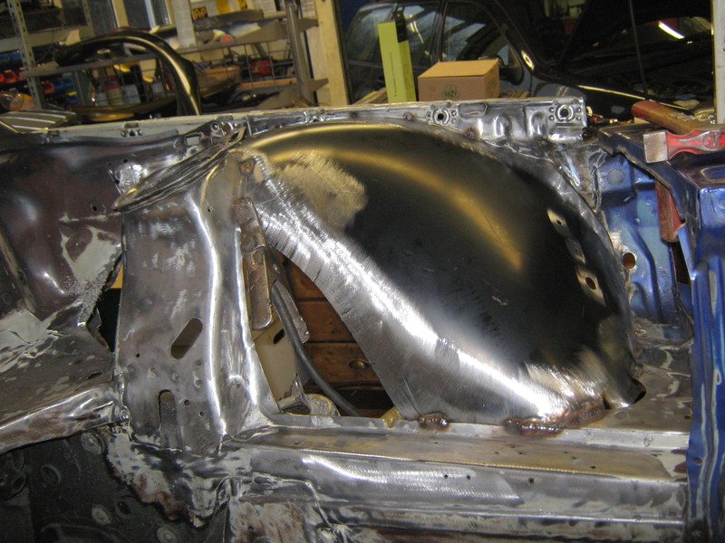 Det var intressanta bilder! Jag tror du får svårt att hitta något från en annan bil som kräver märkbart mindre arbete än om du (läs: plåtslagaren) startar med plan plåt. Tornet utsätts för mycket större belastning än fjäderfästet vid körning så att hela paketet är stabilt är viktigt. Det borde vara möjligt att hitta någon som fixar det i Sverige men plåtisar i den kalibern har väl oftast väntetid till verkstaden.