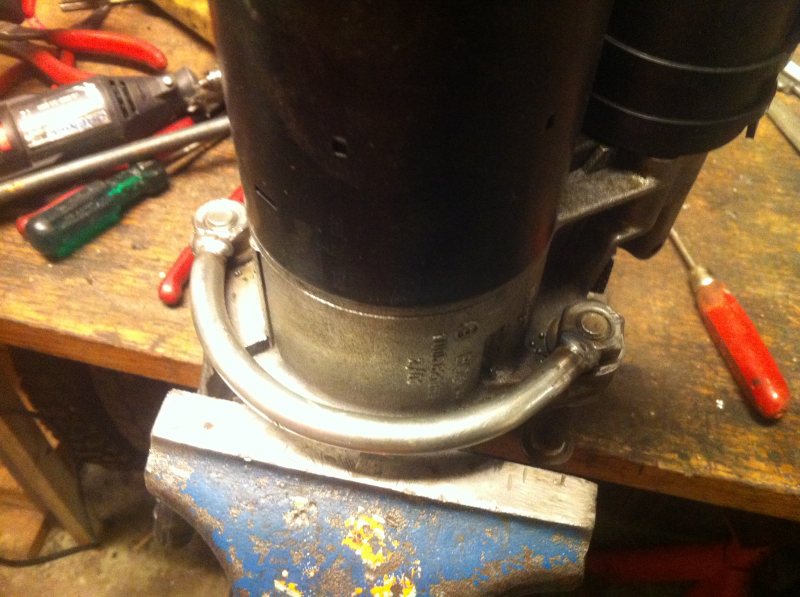 Blivit rätt trött på att ta ner lådan nu, så trött att jag tillverkade denna pryl för att slippa plocka ner insuget för att lossa muttrarna på startmotorn. Nu behöver jag bara lossa bakre bärarmsbussning och se till så skruvarna tar gäng sen kan man dra åt allt från lådan..
