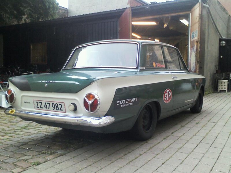 1965 Ford Cortina ( Lotus Cortina look) sælges. Karosse - Rigtig fin med minimal rust , bund i begge sider skiftet , men ellers er der aldrig lavet pladearbejde i bilen. Motor - Opgraderet ford Pinto Ohc med Faldstromsweber , Ford "Bullit" gearkasse og Simons "Sidepipe" udstodning. Undervogn - 3 lags opgraderet bagfjedre , Justerbare Spax stoddæmpere , Skivebremser foran , samt hårdere forfjedre , Lotus 5,5x13 stålfælge. Bilen er "rå" og er ikke et kosmetisk vidunder , men korer rigtig sjovt og er et perfekt emne til racerbil i evt 65 klassen , som enten 1200cc,1500Gt eller Lotus Cortina. Bilen er synet og indregistreret og har cirka 5 år til syn. Ekstra original 1200cc motor/gearkasse kan evt medfolge. Pris som den står . 42.500,- Dkr. Bilen står i Kopenhamn. Mvh.Nikolaj Mortensen Tlf - 0045 - 50 90 67 10
