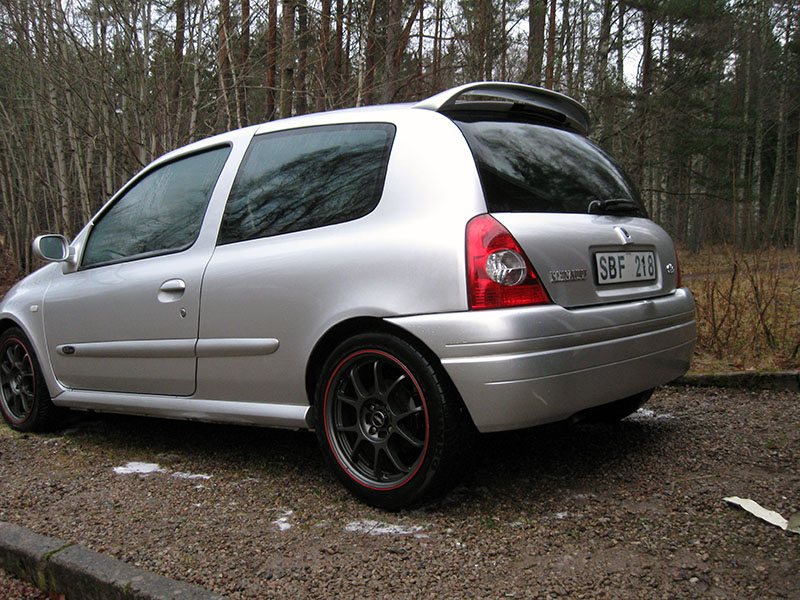 Bakstötfångare med Clio V6-look lackad i bilens färg finns kan medfölja bilen.