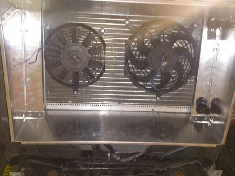 Jag har en Kadett med kyle tbak. Lite över 200 sug hk och orginal kyl samt vattenpump. Kör dock med fläkten igång och jag tar luft underifrån samt från sidorna. Har fungerat även när det varit varmt. Har dock inte kört när det varit 25 grader eller över