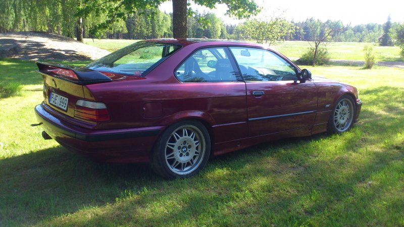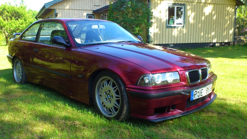 Bilen är såld. Eftersom bilen redan stått stilla 2 somrar och familjen ska bli större så är det lika bra att sälja av denna bil så att nån annan kan ha glädje av den och jag får mer plats i garaget. Bilen är en E36 318is coupé från -92. Hade den först som bruksbil och när annan bil införskaffades var det roligare att göra nått kul med denna än att försöka sälja. Det som är gjort är följande. Väghållning & bromsar: K-Sport track-racing coilover kit med justerbara topplagringar M3 3,2 spindlar & bärarmar fram 25,5 mm krängare fram M3 3,2 krängare bak, den är väl 18 mm om jag inte minns fel Polutheranbussningar eller ledlager i stort sett överallt. M3 3,2 bromsar fram M3 3,2 ok med 328 skivor bak EBC Greenstuff fram & bak Fjäderbensstag fram X-brace Egentillverkade camberstag bak Förstärkt bakvagnsinfästning Hela bakvagnen är iordningjord med nya bussningar & pulverlack på de flesta delarna. 17" originalfälgar med Toyo 888 215/45-17 Drivlina: Motor är original förutom hemmabyggt 2,5" system 4,27 utväxling i bakaxeln Kaross & inredning: 1 Bimarco Expert och 1 Sparco sprint Rally Elit 4-p bälten Billig mocca ratt & nerflyttad ratstång Igenlagd taklucka Lättad på det mesta som finns, dock är dörrar & rutor orörda. M3 front M lister finns till dörrar finns men är ej monterade GT-vinge One-block lampor fram pga vikten. 1 extra par finns eftersom 1 höjdjustering är kass på de monterade. Bilen har gått en del trackdays och är ingen skönhet men den behöver väl inte skämmas så jättemycket heller. Den har gått rätt felfritt förutom att det har gått åt några servoremmar och den går ojämt på tomgång. Synkringar på 1:an & 2:an är inte nån höjdare men det har funkat så det har inte blivit av att jag har bytt. Reservmotor och en extra växellåda finns och skickas med vid ev köp. Tanken var att fortsätta lätta och byta/småtrimma motor & låda men det kom annat i vägen. Den är trevlig & snäll att köra på bana och har gått 1,05 tider på kinnekulle med mig som chaufför och slicks som skor. De gånger som jag har åkt med r-däck har tiderna legat runt 1,06-1,07. Finns det frågor så är det bara att slå en signal. Det finns säkert en del saker som jag har glömt. Ring på 0708-146169. Bilen står utanför Nossebro, ca 3 mil öster om Trollhättan. När det gäller priset så hade jag väl tänkt mej 25.000 eller nått sånt. Kan även tänka mig att byta mot något annat kul. Gärna äldre BMW, Mercedes, Volvo eller liknande. Bara körklara bilar är av intresse eftersom jag inte har tid med annat just nu.