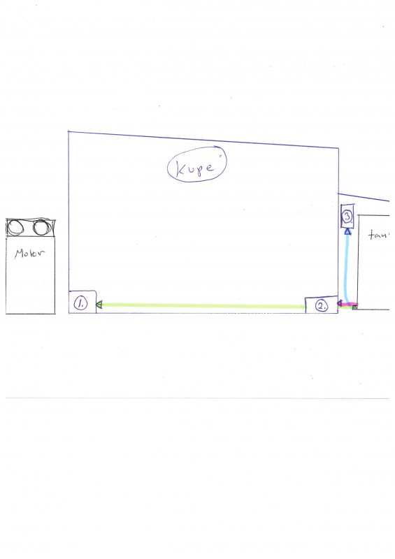 I mitt pågående bygge https://rejsa.nu/forum/viewtopic.php?t=6037&start=357 är det dags att plocka i bränslesystemet och problemet är den ständiga platsbristen. Tanken sitter monterad i fram enl nedanstående skiss och jag skall hitta en plats för en Bosch 044 pump och ett bränslefilter i samma storlek. Jag kan som sagt pga platsbrist inte montera pump och filter i direkt anslutning till tankens utlopp under bilen.