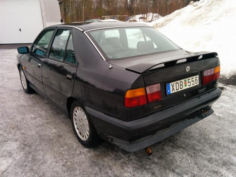 Lancia Dedra Turbo Integrale 1993 , Endast 8100mil. 170hk, turbo och permanent fyrhjulsdrift av samma slag som Lancia Delta. En fyradörrars lyxvariant av Deltan. Svart metallic, ABS, 15 tums alufälgar med dubbade vinterdäck, elantenn, mockaklätt innertak och stolpar, klimatanläggning, centrallås, Extra utrustad med Poltrona Frau läderinreding. Nya bilstein ställbara sportdämpare/fjäderben fram och nya konidämpare bak. Importerad från tyskland till Sverige 2005, kördes 1 år, därefter avställd tills 2014. En solid och tyst bil tack vara bara 8100 mil. Mycket bra skick, går riktigt bra. Ny kammrem, balansrem och drivrem och lager till balansaxelns spännare 2015-01-21 Påställd och skattad Besiktigad utan anmärkning 2015-02-09. Olje och filterservice 2014-12-04 Nya tändstift. Nytt luftfilter Ny termostat. Nytt batteri Nytt bränslefilter Ny vänster främre länkarm 2015-02-05. 28 000 eller byte annat roligt bilrelaterat. Bilen finns i Umeå.
