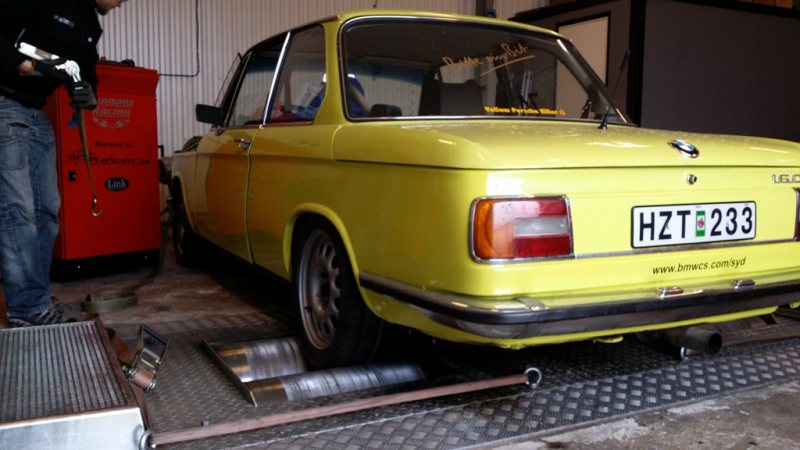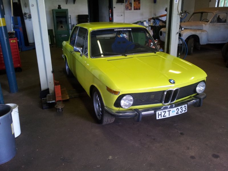Jag trodde jag var kapabel att hantera 2st entusiastbilar på en gång. Har nu kommit till insikt med att så ej är fallet. Det är med vemod jag blir tvungen att sälja den här underbara bilen för att kunna färdigställa mitt andra projekt. Jag glömmer säkert skriva en del här i annonsen då det finns hur mycket som helst att berätta om den här bilen (den var tex med i Bilsport nr21 2001) men jag börjar med att visa "receptet" : BMW 1602 -75 Original kulör Golf-gul Registrerad med turbo sedan tidigt 90-tal Besiktigad till 2016-05-31 Skattefri Kostar mig 160:- i månaden i helförsäkring Motor : M10B20 80mm slag Standard 135mm smidda vevstakar (skall klara minst 450hk utan problem) VW Mahle smidda kolvar 90,5mm borr (motormekano halmstad) 1,8i topplock med orginal 264'kam samt lätt portade kanaler 8,2:1 Kompförhållande Ireland Engineering polyuretan motorfäste Orginal vattenkylare samt mekanisk fläkt Skärringspackning Elring ARP topplockbultar "Saab tryckplatta" Sachs typ 228 Sachs förstärkt organisk lamell t04e turbo (nyrenoverad för 500mil sedan) HKS 40mm wastegate (äkta HKS samt 0,70bars grundtryck) 300*300*76mm IC Bosch plastdump (varianten som skall klara minst 1,1bar) 3" downpipe med återcirkulerande rör från wastegaten samt 1st uttag för avgastemp och 1st lambda Resterande avgas 2,5" Bränslesystem : 875cc/min Precision spridare Ombyggd orginal btr DW200 intank pump 8mm bränsleledningar Tändsystem/ motorstyrning : Stummad fördelare MSD 6A MSD Blaster 2 spole NGK BCPR7ES tändstift Biltema blåa silicon tändkablar Autronic SM2 1.93chip Vevtrigger honeywell gt101 med 2 tänders hjul Tändkabel No1 givare Autronic laddtrycksstyrningsventil Mätare / Interiör : Autometer "indash" Varvräknare Autometer avgastemp Autometer oljetryck Autometer laddtryck VDO oljetemp MTX-L bb-lambda Corbeau Alpine Classic tidsenligt racestol Chassie : Jamex fjädrar Bilstein sportdämpare Alla bussningar i polyuretan eller nylon Nyrenoverade frambromsok från 2002tii Ventilerade 260mm skivor e21 323 Ferodo DS2500 belägg (inte ens inkörda) Nya hjulcylindrar samt bromsbackar bak Justerbara Krängningshämmare 02depån Förstärkta bärarmar m,m Drivlina m,m : Getrag 265 overdrive 5vxl låda från 535 e28 Ombyggd kardanaxel 3,73:1 188mm diffbroms från e30 Bridgestone Potenza RE002 195/50-15 däck Alla specialgrejjer som jag har utfört är noggrant dokumenterat med bilder och ibland ritningar (typ ombyggnationen av bakvagnen) så att om någonting pajjar så vet man vad som just är special. Karossen är väldigt fin och rostskyddad undertill, hela fram och bakvagn är blästrad samt lackerad av tidigare ägare. Har precis fått hem reparationsplåt till dörrarna från tyskland, då de behöver rostlagas nedtill. Det arbetet samt lack blir utfört innan försäljning. Utöver rosten i dörrarna så finns det någon liten blomma på motorhuven, bagageluckan, fronten samt höger bakskärm. Men för sin ålder så anser jag den vara helt okej i skick, dock inte "utställningsskick". Bilen är fantastisk att köra. Har endast kört ca 100mil med den sedan jag "blivit klar" men får ständigt höra "cool bil", "wow, sådana ser man aldrig längre". Den är idag kalibrerad på e85 bränsle till 0.7bars laddtryck där den ger ca 220hk samt 350nm. Med sin låga vikt går den verkligen som ett spjut. Allt i motor och drivlina är byggt för att klara ganska mycket mer effekt än så om man önskar gå vidare. Jag har kostat på bilen väldigt mycket de 10 månaderna jag ägt den, kvitton finns kvar på det mesta. Är du seriöst intresserad så ring eller maila mig så kan jag berätta mer om bilen. Vill du kika på den har jag även möjlighet att hissa upp den på lyft så du kan titta undertill. Ser allt bra ut avslutar vi med en provtur där jag kan garantera att du ej blir besviken ;-) Begärt pris är 90000:- (med tanke på hur mycket som är nytt på bilen, MEN vid snabb smärtfri affär är det förhandlingsbart) Mitt telefonnr: 0763917181 Mail: martinsoderlind84@gmail.com