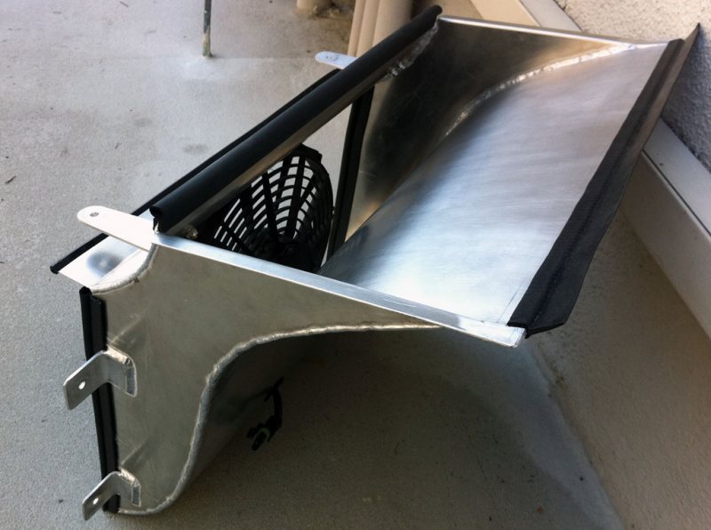 Jag skulle satsa på att ta in luften nedtill (eventuellt plugga njurarna) och sedan bygga en trumma som tvingar luften till kylaren och sedan öppna upp huven för att öka på flödet.
