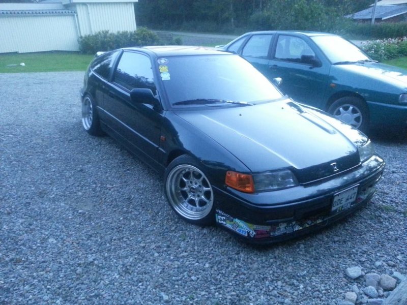 SÅLD TILL EN REJSIAN Tänkte se om någon vill ta över min Honda då jag inte hittar ork till att göra den iordning. Det är en 1989 års CRX ED9 med en B16A1 (160hk) motor samt låda monterad. Chippad och helsystem monterat. Nytt kyl. Ny Fördelare. Nya drivaxlar. Kamrem, vattenpump, spännare. Planat toppen 0.07mm. Tätningar till V-tec solenoid nybytta. Ny huvudcylinder, (Fel storlek så lång pedalväg men nyper bra) Hjulinställning (Vianor) Chassit har BC-Coilovers samt justerbara övre länkarmar bak. Justerbara övre länkarmar fram ligger i låda för montering. Stålomspunna ledningar till bromsarna. Följer med massor med delar. Intergra insug. Större spjällhus. Hondata ECU. Topp. Nya hjullager. Och massa annat krafs. Det som behövs ordnas inför en besiktning är. Ny kattalysator. (Gamla trasig pga toppläcka) Laga höger tröskel. Laga/Tejpa skärmar. Skivor bak är fula. Startar kanon, går att köra/provköra. Rejsa Pris: 10.000kr Säljes med plåtfälgar och vinterdäck. Skick sms eller PM till att börja med. 073 0736-784331