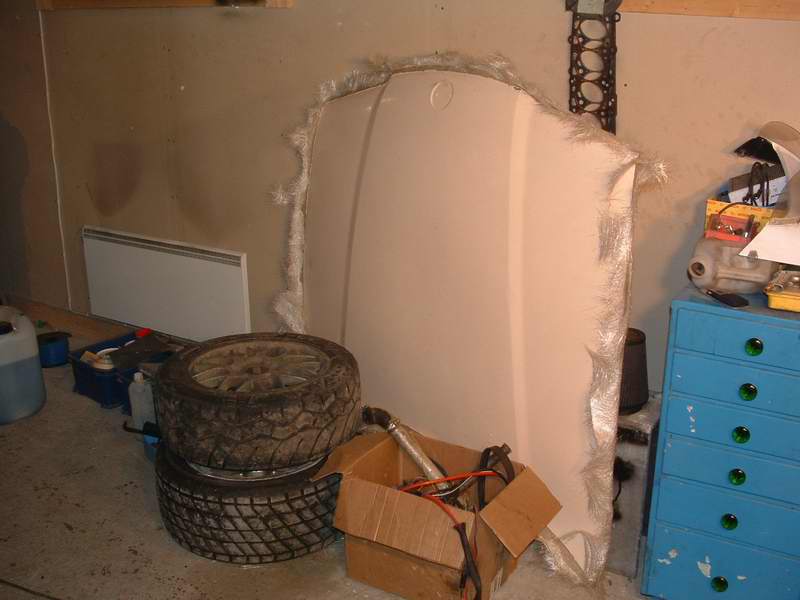 original huven till en sedan väger ca 16kg, den jag har gjutit i glasfiber väger ca 4kg. Det går att använda org gångjärn och lås om man förstärker upp dom delarna, jag tänkte använda huvsprintar.