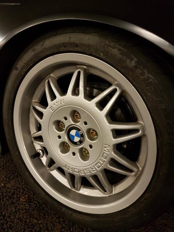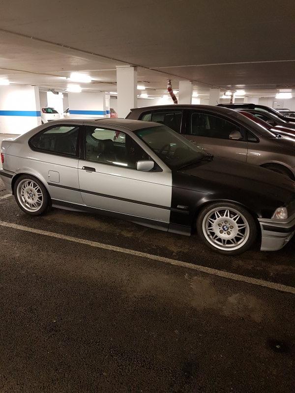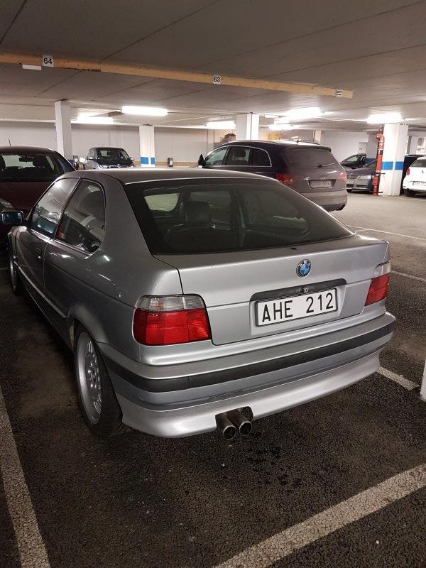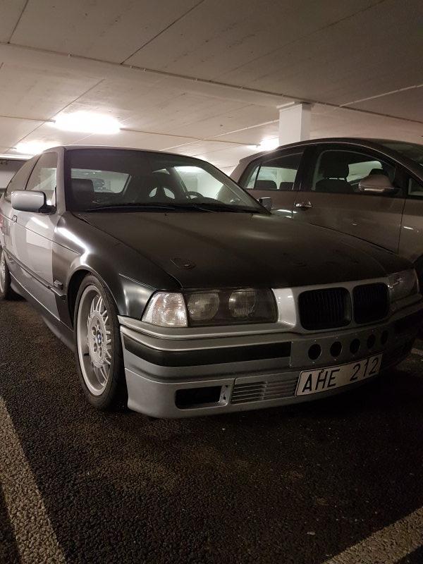 Hej racetokar! Har snubblat över ett annat objekt att åka bana med, säljer därför min E38 318ti Compact. Vi börjat med det positiva: Skalstol K-sport ställbara coliovers. Nya skivor runt om, slitsade fram. Nya bromsok runt om. Nya belägg Ferrodo DS2500 fram, green stuff bak. Nya framskärmar, ej lackade. Trösklar rost lagade på firma, kvitto finns! Rensad på inredning, servostyrning och ac. Lamell diff 188diffhus Helt nya federal rsr på 15" alu. Vid rätt pris 6st bmw original M3 fälgar med helt nya federal rsr. Pigg i motor och låda. Takluckersättare från ACM. Glasfiberhuv (rätt ful) med huvlås, original finns. Det dåliga: Ej besiktigad, gick igenom 2015 (förra ägaren). Allmän racefinish på bättringsmålningar osv. Rostiga skärmkanter bak. Bromsrör har sett bättre dagar. Oljeläckage motor okänt varifrån men det droppar en hel del. Bilen finns i Sollentuna. Då jag är både småbarnsfar och arbetsnarkoman så får ni gärna skicka sms eller pm först. 0736307095 Pris med 5st 17" M3 fälgar federal rsr och 4st 15" federal rsr: 23.000kr. Pris med endast 15": 19.000kr