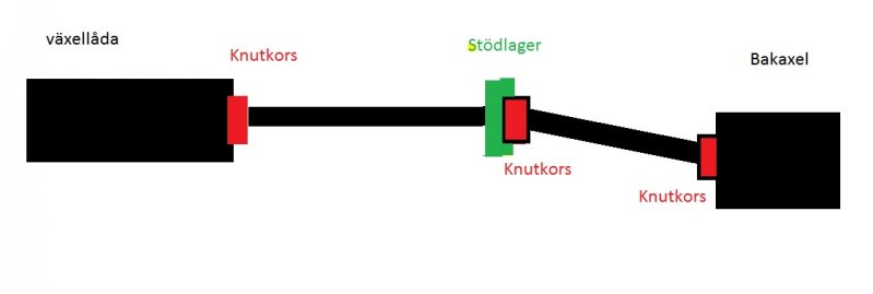 Har en volvo 740 med saab motor Fått tag i en omega låda med knutkors istället för hardyskiva. Jag undrar hur vinklarna ska vara eller är de bara skrota tanken med knutkors iställer för hardy? I stora drag har jag fattat de som att vinkeln på lådan ska vara samma som bakaxeln? Ritat som de ser ut idag men har kraftiga vibrationer, över ca 75 km/h. De kom när jag sänkte bilen bak och bytte stödlager gummi. Innan jag bytte stödlager gummi fanns de vibrationer när man gasade med bilen, men eftersom stödlager gummit blev 10 gånger stabilare antar jag att vibrationer har lättare att vandra ut i karossen nu. _________________ Robin Lundgren |