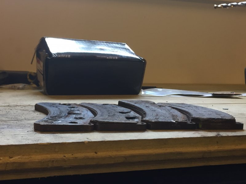 Gå igenom beläggskisserna från tex PFC och Pagid och kolla om det finns några belägg som ser ut att ligga nära i mått och form. Därefter skriver du ut dessa i skala 1:1 och kollar någon av dem går anpassa med lite slip och/eller svets.