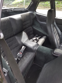 Hej! Bilen är en -86 2.5 NA som gått ca 23800. Den är besiktigad i maj -17 och rullar två år framåt. Bilen har el-targa, el-speglar, fönsterhissar plus sedvanlig utrustning. Färgen är graphit metallic med en Porsche-script inredning. Fälgarna på bilen är BBS Mahle 15 tum (7 fram & 8 bak) med Kumho XS KU36 däck. Bilen är konventerad till E85 (chip för 98-oktan plus spridare följer med bilen). Inga skrap från växellådan eller känsla av glapp i växelföraren utan distinkta lägen. Bilen upplevs som "tajt" med bra väghållning. Bilen har sänkningsfjädrar fram och är sänkt bak på svärdet.
