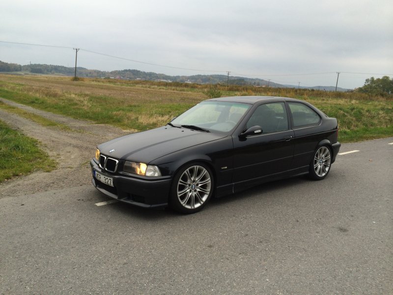Pga mina två pågående E30-projekt, har jag beslutat att sälja min 323Ti då tiden inte räcker till. Förhoppningen är att den hamnar hos någon som känner till att det är en ganska ovanlig variant och uppskattar detta. Den är tillverkad 2000-07-19 och är utrustad med det ovanliga Sports Limited Edition vilket inkluderar M-sport paket, lite speciella inredningsdetaljer, fabriksmonterad short-shift m.m. Denna årsmodellen har M52B25TU motorn, med bla insugskam och svänghjul från M52B28 Det känns definitivt som det är mer effekt än de 170hk som är angivet. Går superfint i motor och övrig drivlina och känns tight och fin att köra. Utrustad med någon form av sänkfjädrar/dämpare, okänt fabrikat. Fungerande AC. Cosmosschwartz metallic. 18" hjul 17" vita fälgar medföljer, lämpliga att lägga R-däck på. Ett riktigt bra utgångsobjekt för en kul "track-day" bil eller kanske en uppfräschning till fint originalskick (det var min plan). Det är definitivt en blivande klassiker och en av de roligaste bilar jag kört, trots ganska blygsam effekt. Pris 35000kr