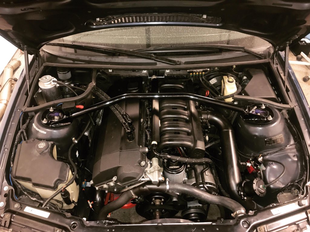 Hej! Går i säljtankar då ett nytt bygge lockar. I grund och botten en svensksåld 320 M sport. Bilen har rullat fåtal vintrar vilket resulterat i att den är skonad ifrån rost. Bilen är väl påkostad och byggd av mig. Oerhört diskret bil. Finns mycket att berätta om bilen. Den seriöst intresserade hör av sig för mer info/bilder. Bilen är byggd med planer på SFRO reg. Det som behöves för att slutföra detta är egentligen ett bänkpapper på rätt effekt samt en katalysator, resten är klart. M50B28 TURBO *Botten: - M50B25 IV Block - bearbetat enligt konstens regler - M50B28 vev - ACL Lager - CP Kolvar - HD Kolvbultar - PPF Stakar - Stödgördel - Racekedjor - ARP bult i hela botten - ARP Topplocksbultar - Vac Motorsport oljepumpsaxel - Helt ny oljepump - S50 Oljefilterhus - PPF Oljefilterlock - PPF Oljeadapter - M3 3,2 Kamkedjespännare *Toppen: - Iordninggjorda ventilsäten - Dubbla "IV ventilfjädrar" - CrMo Retrainers - Cooperring toppackning - ENEM K2 Kammar (dom vassaste) *Bränsle: - Bosch EV14 1300cc - Nuke Blackline Filter - Nuke Y-Kors - Nuke Fuelrail - Nuke Catchtank - Dubbla DW301 Pumpar - Original tank är kvar - Svart Nylonslang AN8/AN6 - PPF AN Kopplingar till hela bränslesystemet. - Aeromotive Bränsletryckregulator *Turbo/Avgassystem: - Precision 6466BB Gen2 - Precision 46mm Wastegate - PPF Downmount Vband grenrör Coatat - 3,5 Downpipe - 3,5" Rostfritt system från Ferrita - V - Band till hela systemet *Kylning: - AutoBahn 3" Intercooler - Expansionskärl i Alu - Racekylare i Alu - SPAL kylfläkt - Oljekylare/AN - Förstärkt vattenpump - BMC 4" Luftfilter *Styrning: - ECU Master Black - Canbusstyrning - VAG 115F COP spolar - Oljetryckssensor - Bränsletryckssensor - MAC Laddtrycksstyrning - Bosch LSU Bredbandslambda - NGK BCR8ES Tändstift - Kabelhärva byggd av PPF *Övrigt: - PPF Blackline 50mm Dumpventil - Allstar Catchtank med filter - PPF Diamond Series siliconslangar - Nuke Slimline Vacumstation *Drivlina: - GS5-39DZ Växellåda med största medbringaren - Sachs 765 Tryckplatta - KEP 6 Puck ofjädrar sinterlamell - PPF CrMo Svänghjul 6kg - PPF Svänghjulsbult - Sellholm Spakställ - M3 E46 Kardan med stora medbringaren fram *Chassi: - E46 M3 Bakvagn, totalt renoverad. - Millway justerbara camberstag bak - Millway Solida Alu bussningar subframe - Millway Led-lager bärarmar - Millway Led-lager övre bärarmsbussningar - Nya Original Diffbussningar - CSL Kulled i övre och undre bärarmars yttre fäste - Meyle Heavduty bärarmsbussningar fram - M3 E46 Krägningshammare fram & bak med Powerflex bussningar - D2 Sport Coilovers justerbar höjd och returdämpning - D2 Ställbara främre topplagringar - D2 Förstärkta bakre topplagringar - Fjäderbensstag fram & bak - Pinnbultar runtom *Bromsar: - E46 M3 Huvudbromscylinder - D2 Racing bromskit - 8 Kolvs ok fram med hålborrade 360mm skivor - 4 Kolvs ok bak med hålborrade 340mm skivor - Stålomspunna slangar - PFC Carbotech XP24 Belägg - Castrol React Performance olja *Fälgar: 18x9" Style 67 Smidda original fälgar pulverlackade i grå kulör. Kumho Ecsta KU36 265/35 runtom. Däck nya, fälgar nylackade. *Bromsar: - E46 M3 Huvudbromscylinder - D2 Racing bromskit - 8 Kolvs ok fram med hålborrade 360mm skivor - 4 Kolvs ok bak med hålborrade 340mm skivor - Stålomspunna slangar - PFC Carbotech XP24 Belägg - Castrol React Performance olja *Interiör: - E46 M3 CSL Mocca Ratt - E46 M3 Kanelbrun interiör - Dynavin med gps - Harmankardon ljudssystem - Bakre rutor elektriskt tiltbara - Elektriskt styrda stolar med minne, svankstöd med mera Priset sätter jag på 190000kr med är diskuterbart med rätt person.