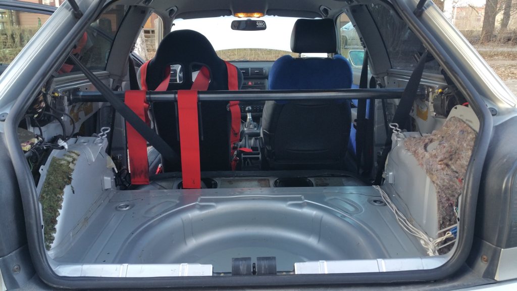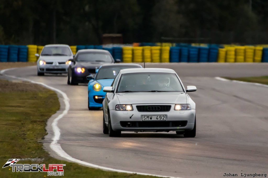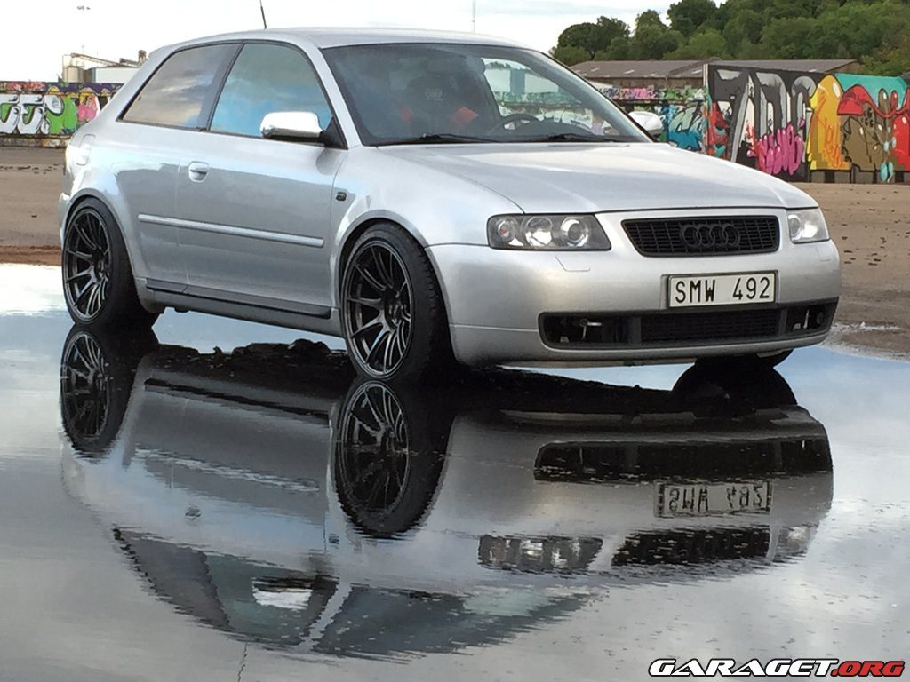 Säljer en Audi S3 -01 som tyvärr bara står still pga. tidsbrist. Prisvärd racebil både köp/ägandemässigt. Lättkörd och snabb på bana! Som den står nu så är den i ett bra vägskäl mellan att vara fullt återställningsbar, eller att bli mer race med relativt små medel. Alltså registrerad för 5 personer, samt ingen svetsad bur eller så. Så inget konstigt hos transportstyrelsen. Den är rensad på inredning, men all inredning är fräscht och finns kvar. Lite specifikationer: Svensksåld. Bilen har gått ca 20xxx mil. (Exakt siffra kan kollas under veckan då bilen står på annan ort) Just nu obesiktigad. Senaste besiktningen påpekade ett par enkla saker i stil med att reflex bak saknades. Men då varken tid eller ork funnits sista tiden så blev den stående. (Besiktigad 2016-05-06 ua) Som den är nu, så är det bra att slänga in inredning för besiktning pga. antal passagerare. Så för att slippa sånt, om intresset finns att bara ha den reggad för 2 stolar så är ju problemet löst med en enkel omregistrering. Det finns kvitton på över 40 000:- från vintern 2016. Sedan dess har den rullat någonstans mellan 2-300mil varav en trackday. Det som blev monterat på bilen under den vintern är följande: *Nya KW V3 coilovers med möjlighet att justera höjd, retur (16 klick) samt kompression (12 klick) köpt av Pean Sweden. *Ny Sachs PCS tryckplatta, Sachs PCS fjädrad sinterlamell och ett enkelmasigt lättat svänghjul, allt är köpt av DLI Teknik. *Porsche (Brembo) 4kolv ok fram med Ferodo DS2500 belägg och slitsade Brembo skivor och HEL stålomspunna slangar. *Bak sitter det ny renoverade original ok med nya Stoptech skivor och nya Stoptech belägg, köpt av Pean Sweden. *Ny PFC RH665 bromsvätska. *PowerFlex bussningar i Dog Bone och krängningshämmaren fram. *Silikon insugsslang från turbon, köpt av do88. *Ny drivaxel vänster fram. *Nya stabiliseringsstag fram *Nya fjäderbenslagringar. *Nya Q8 Formula F1 10W-50 olja och nytt olje filter (~300mil) *Nya NGK tändstift (~300mil) *Nytt Mahle bränslefilter (~300mil) *Motorn är en 1.8l turbo på 210hk original, där sitter det ett steg 1 nu som tidigare ägare har fått installerat så nu levererar runt 260hk. *6-Vxl manuell låda. *Quattro (Haldex) *Öppet luftfilter. *OPM TRS skalstol på ställbar glidskena och ett Sabelt 4punktsbälte. *Bortplockat diverse inredning som tex. baksäte, asfaltmattor mm, så den väger bara 1280kg utan förare och halv tank som den står nu. *All inredning finns som sagt kvar och följer givetvis med vid köp. *Jag har 2 uppsättningar däck och fälg till bilen. Uppsättning 1(gata): XXR 527 18x9,75" fälgar med nya 245/40-18 Bridgestone Potenza S001 däck. Uppsättning 2 (bana): Audi 18" original fälgar med nästan nya 225/40-18 Michelin Cup2 däck (har gått 2 trackday körningar). Inga vinterdäck finns. Det sitter en Pioneer AVH-4400BT med DLS högtalare fram och Bose bak. (det sitter inga bak nu då inredningen är bortplockad men dom följer med) Jag har en hel pärm full med diverse kvitton och andra papper från att bilen var ny. Stämplad service bok fram till 171450mil Kamremmen är bytt vid 12003mil. Det följer även med en helt ny 3" downpipe. (ej monterad) För mig har det endast blivit lite mil på gata och 1st trackday på Gelleråsen. Detta pga. att jag stått med både separation med husförsäljning etc. samt bytt jobb sedan jag köpte bilen och inte pga. bilen i sig. Hade gärna kört mycket mer på bana med den. Varvtid på Gelleråsen första gången på banan, och första gången med bilen: 1:22,84 Bra att veta: *Dumpen hänger sig ibland vid gaspådrag. *Reflex bak saknas. *Vakuumpumpen till centrallås fungerar inte. Jag väljer nu att sälja den obesiktigad för ett lägre pris än jag egentligen vill ha pga. att jag inte har någon tid/ork att pyssla något med den. Under hösten kommer jag dock göra klart den och då är priset ett annat. PRIS BESIKTIGAD: 65.000kr PRIS NU (OBESIKTIGAD): 50.000kr Bilen står i Fagersta, Västmanland Telefon: 072 394 3911 Länk till förra ägarens Garagetsida: https://www.garaget.org/?car=396662
