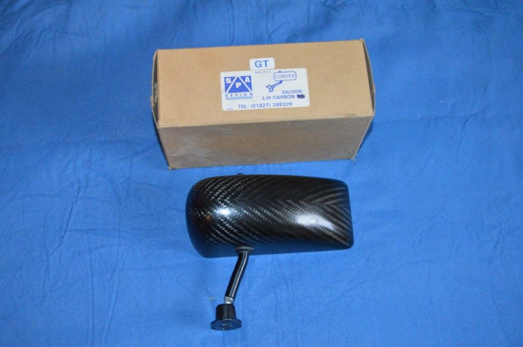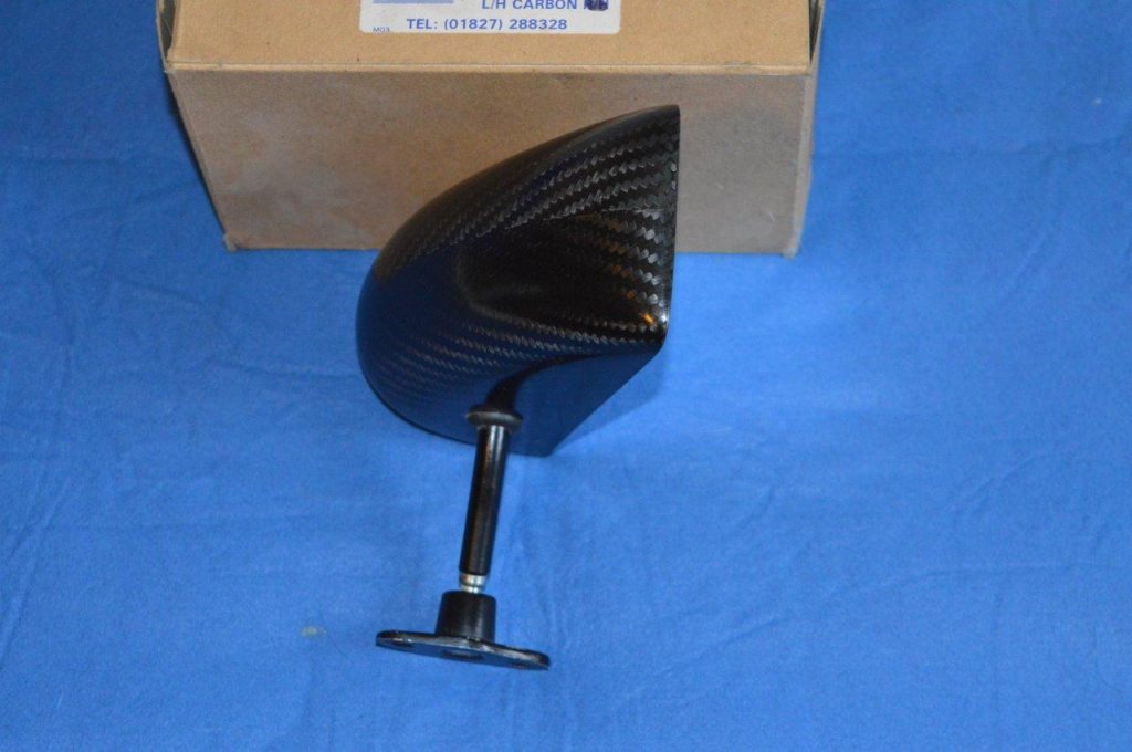 Spa Design backspegel i kolfiber, vänster sida. GT/Touring CCL utförande med slätt glas, ej konvext. Mått: 70 x 150 mm. Pris i GB: 128 pund. Pris: 900:- med frakt inom Sverige. Mejla på: teamgog@telia.com