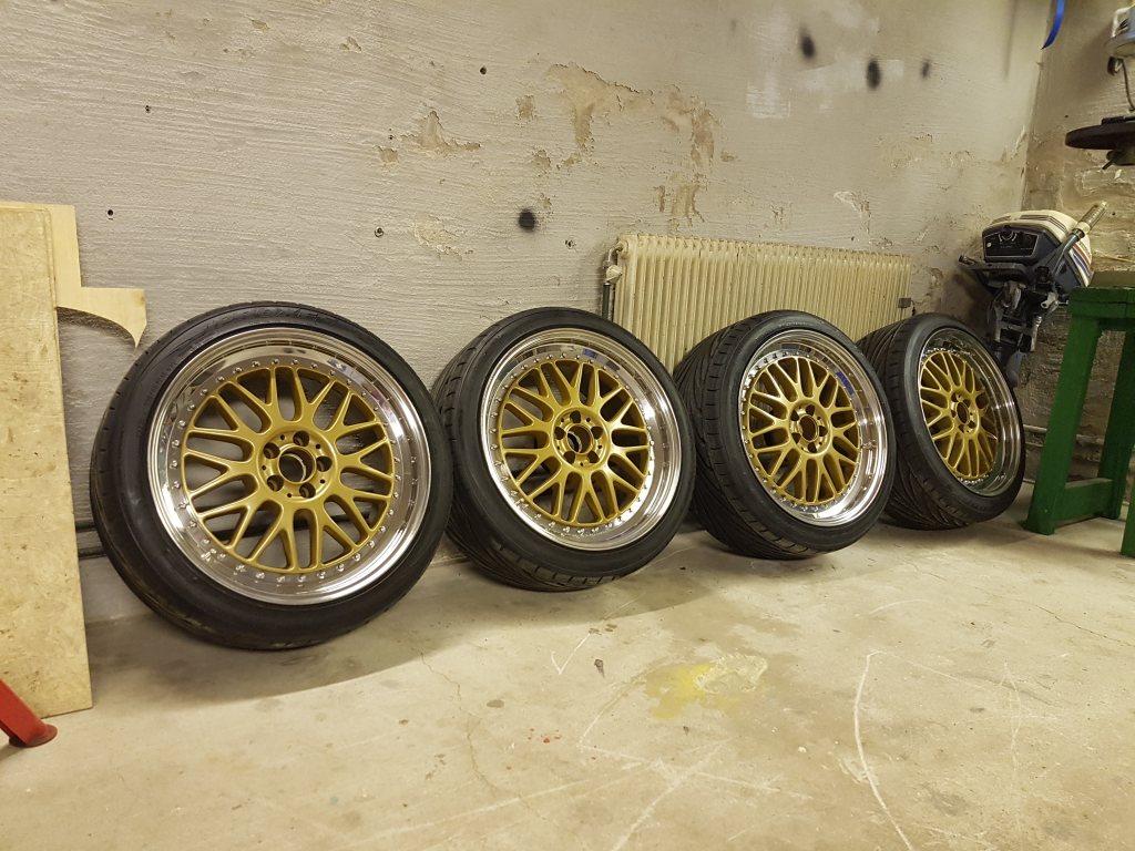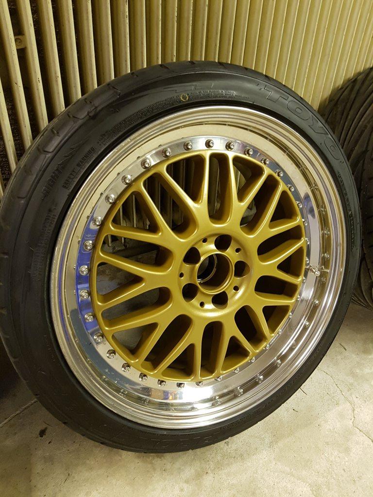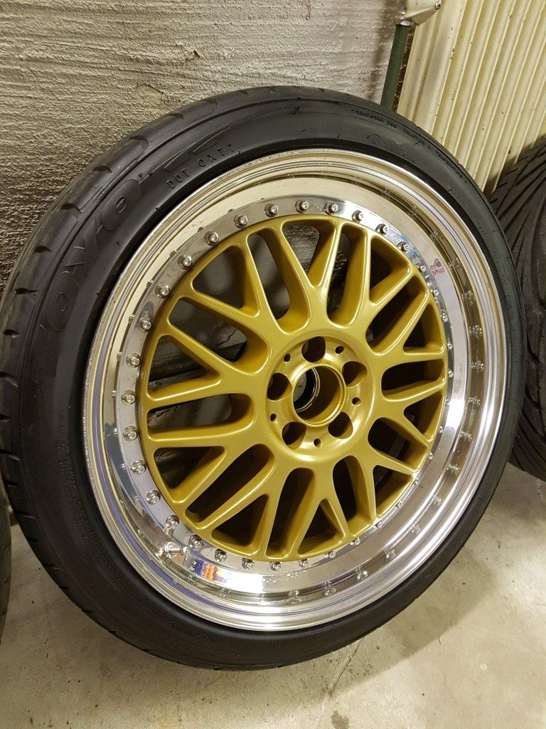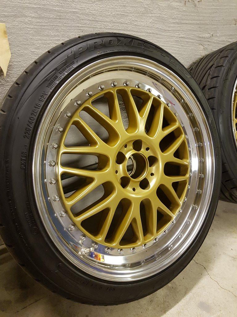 Hej! Har ett set fina hjul att sälja. Fälgarna är renoverade i vintras, då blev dom isärskruvade, blästrade och pulverlackade. Fälgbanor + skruvar högglanspolerade. Skoddes i våras med nya Toyo T1-R. Sedan körda till mitten på Juni. Allt balanserat och klart att montera och åka! Säljes pga att jag inte får på dessa efter bromsuppgradering. Info: Rial Daytona Race Split 18x8,5" ET30 5x100 Nav 63mm men har kört centreringsringar så att jag fått ner nav till 57.1. Dessa följer med. Fälgbanor + Skruvar tillverkade i rostfritt. Däck: Toyo Proxes T1-R 225 40 18. Inköps kvitto finns. Prisidé 10 000kr eller vettigt bud, byten också intressant. Då är en Recaro Pole Position i delbetalning av intresse. Kontakt: PM. Tele: 0-SJU-0-2487630 Mvh Olle.