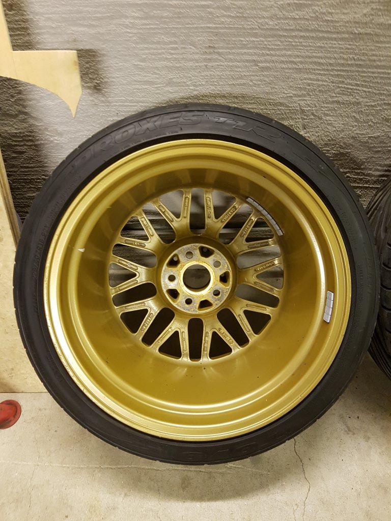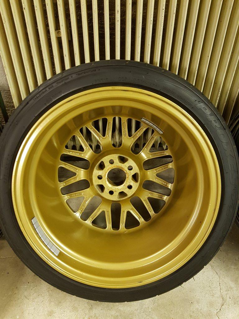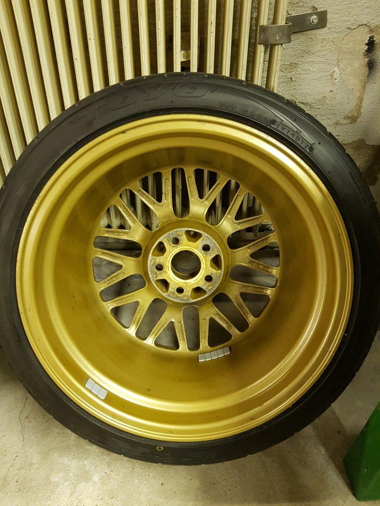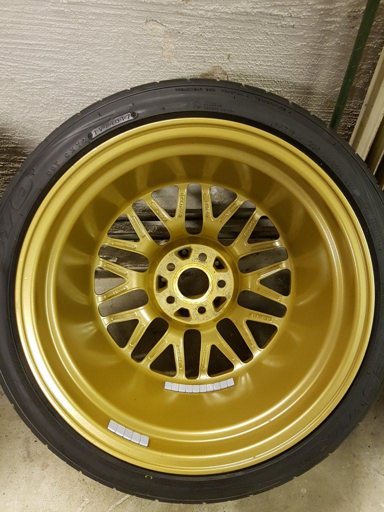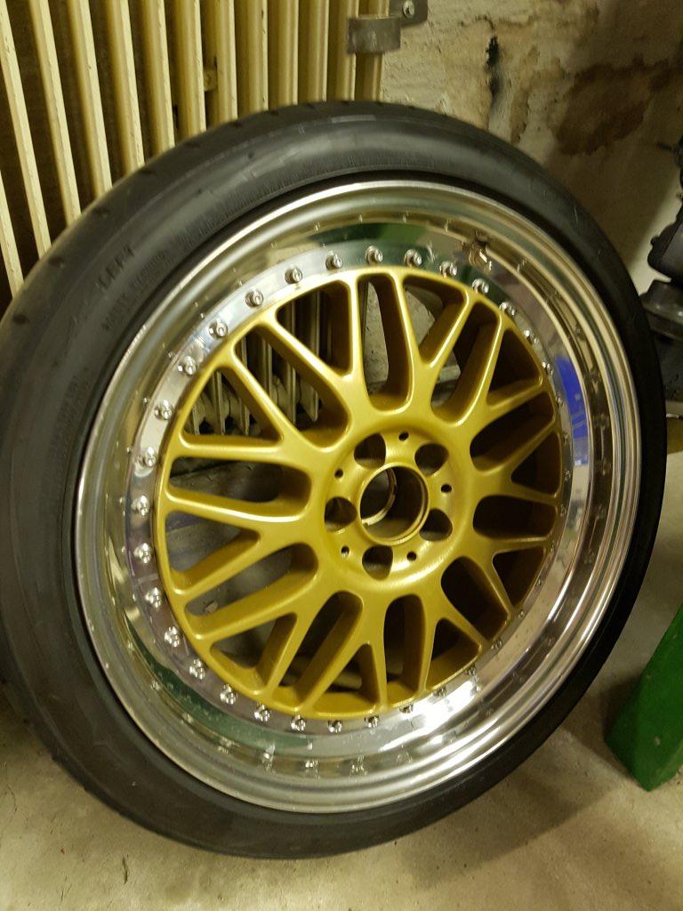 Hej! Har ett set fina hjul att sälja. Fälgarna är renoverade i vintras, då blev dom isärskruvade, blästrade och pulverlackade. Fälgbanor + skruvar högglanspolerade. Skoddes i våras med nya Toyo T1-R. Sedan körda till mitten på Juni. Allt balanserat och klart att montera och åka! Säljes pga att jag inte får på dessa efter bromsuppgradering. Info: Rial Daytona Race Split 18x8,5" ET30 5x100 Nav 63mm men har kört centreringsringar så att jag fått ner nav till 57.1. Dessa följer med. Fälgbanor + Skruvar tillverkade i rostfritt. Däck: Toyo Proxes T1-R 225 40 18. Inköps kvitto finns. Prisidé 10 000kr eller vettigt bud, byten också intressant. Då är en Recaro Pole Position i delbetalning av intresse. Kontakt: PM. Tele: 0-SJU-0-2487630 Mvh Olle.