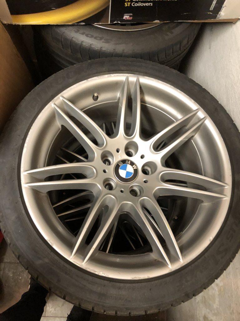 Hej, jag har ett sett fälgar som blev över från en såld bil. BMW original style 288 5x120 cb 72.56mm 8.5 +14, 245/40-19 9 +14, 275/35-19 Däcken är Hankook Ventus S1 Evo2 ca 2år gamla Gissar på 5mm mönsterdjup fram och 3mm mönsterdjup bak, har ej mätt! Sitter som en käftsmäll på E60/E61 (ej xdrive) och kom original på en E63 6-serie. Två av fälgarna är tyvärr ganska grovt kantstötta men är ingenting som märks vid körning och går att fixa om man är händig eller lämnar till firma. Ovanliga fälgar han inte sett några andra av denna modell. 10000:- Kom gärna med bud, kontakt via pm tillsvidare. Finns i Täby, strax norr om Stockholm längs E18. MVH Christopher Sollerbrant
