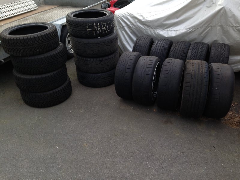 6 st Falken Azenisis 205/40/17 går nog välja ut 4 med ok mönster. Grymt bra fäste för ett gatdäck, säkert 4 timmar bantid kvar i dom. 1000kr