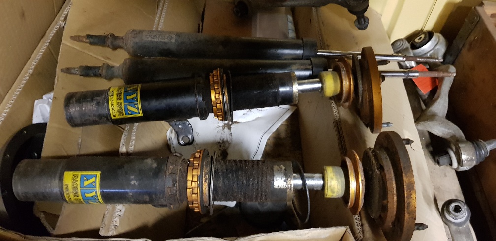 Endast fram, fjädrar finns. Race modellen Höjd justering för fjäder bak samt BMW orginaldämpare M-sport finns. Pris 2500:- eller bud 0703283491