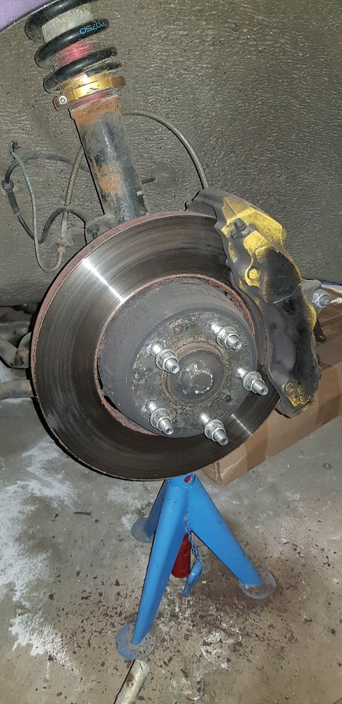 Bromsok från Porsche 996 Gt2 med adapter till M5e34 tillsammans med M5e34 1995 skivor Pagidbelägg. Skivtjocklek 29 mm, antagligen snart läge att byta. 15000:- Noll703283491