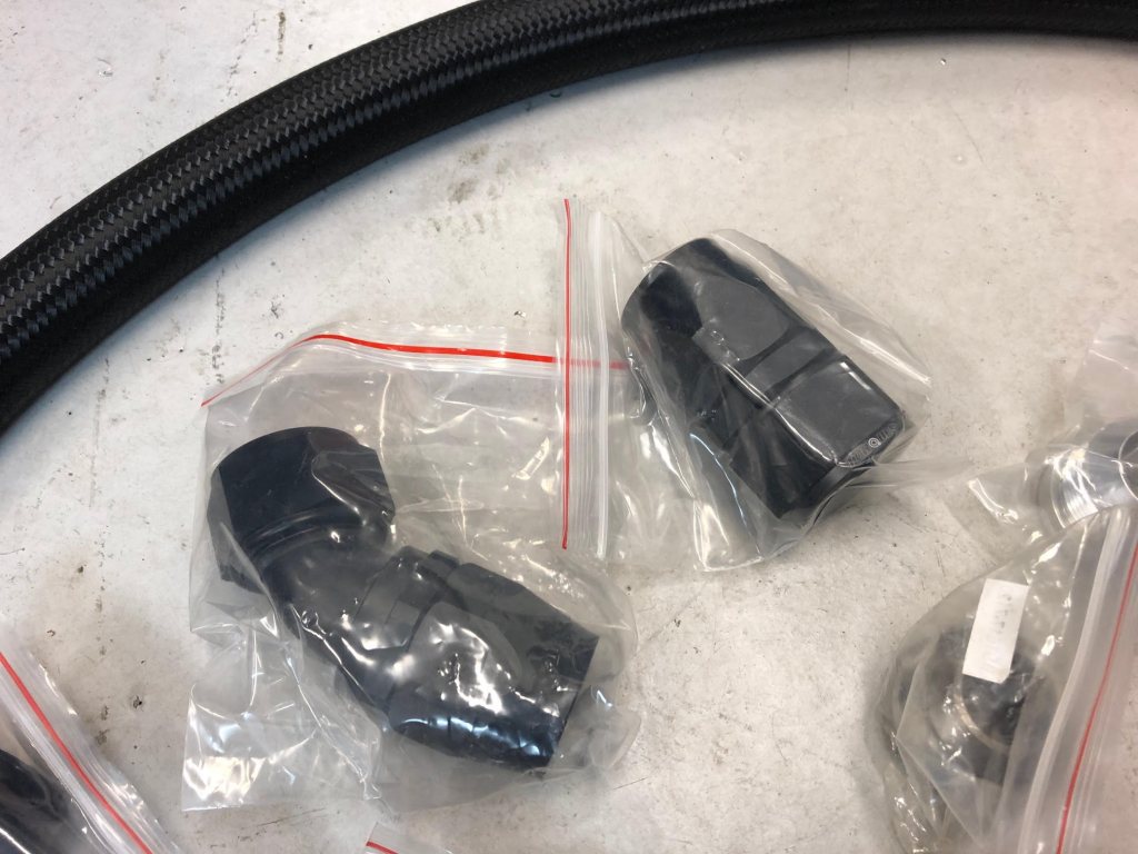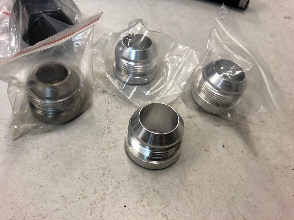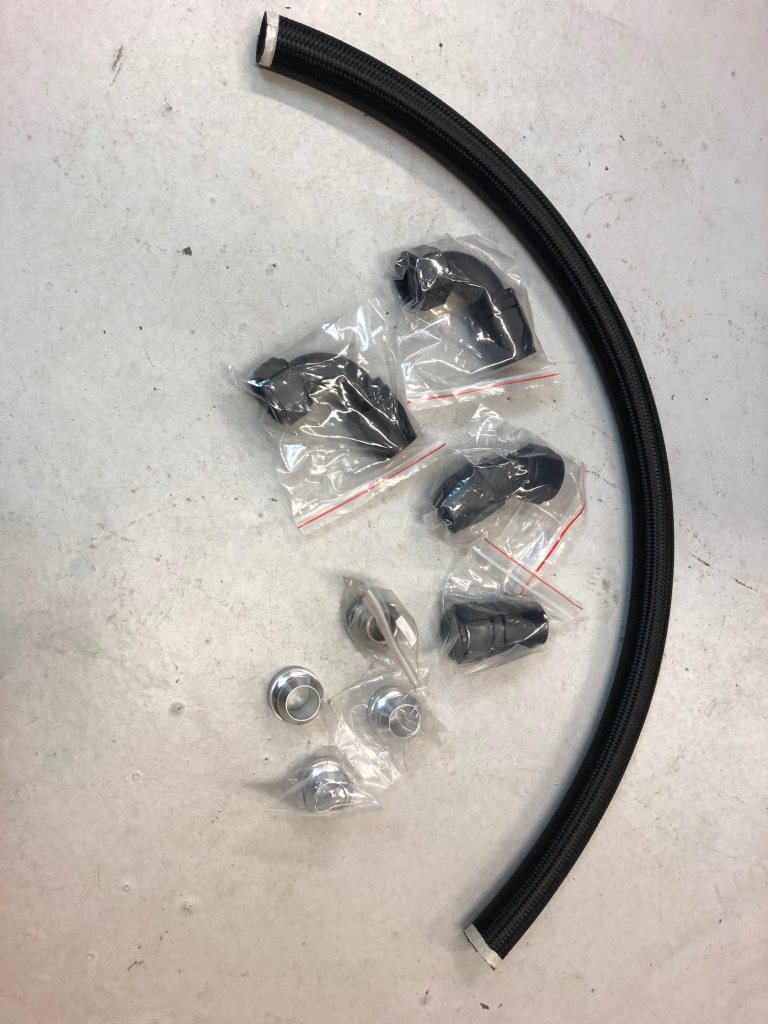 AN20 kopplingar, slang och svetsanslutningar. Helt nya och blev över från bygget. 2st 90 graders, 1st 45 graders och 1st rak. 4st svetanslutningar, 3 aluminium och 1 stål. 1 meter nylonomspunnen slang. 2000kr fraktat och klart. Annars finns grejerna för avhämtning i Hindås alternativt att mötas upp i Göteborg.