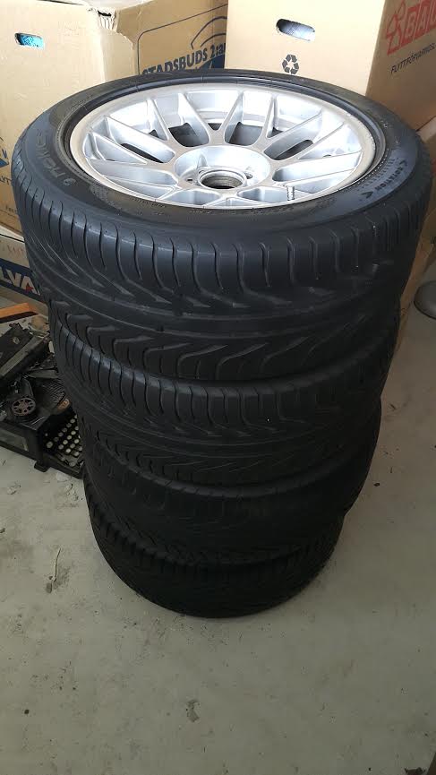 Hej, tänkte kolla intresse för en uppsättning av den berömda sällsynta BBS fälgen RC 302 i magnesium väger endast 7.4 kg, 17 tummare med Nokian Z däck. De blev kvar efter att BMW 740n (E38) såldes ifjol. Passar en mängd bilmodeller / karrosser bla BMW. Bultdelning 5*120 Et 15 8 1/2J X17 H2 Däck Nokian Z 235/50 ZR 17 96W, ca 3-5 mm kvar. Skicket är fint, två fälgar är nära felfria och två fälgar har mindre kantstötning. BBS centrumkåpor i bra skick med originaldekaler hör till. Finns i Västerås 10 mil väster om Stockholm för avhämtning. Alternativt skickas med Rejsabud eller fraktbolag som passar er. Skicka PM för mer info.