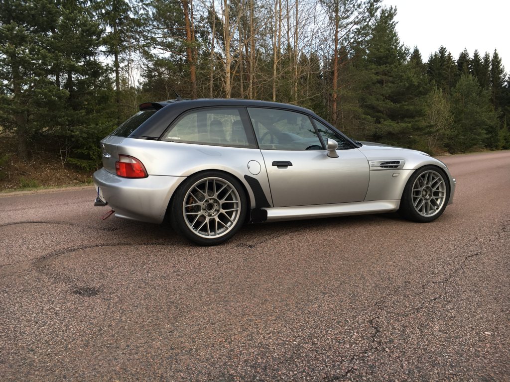 Z3 Coupe 2.8 -99 Ca 19000 mil Dragkrok!! Glastaklucka BC Racing BR coilovers (120/180nm) Millway silentblock Millway excentriska bärarmsbussningar Strongflex krängningshämmar bussningar fram Stålomspunna bromsslangar Ferrodo 2500 bromsbelägg 330 e46 bromsok & skivor fram Z3M huvudbromscylinder Bromskylning fram K&N luftfilter Turbogrenrör Ombyggt avgassystem (3" sbf katalysator & apple ljuddämpare) Walbro 450 bränslepump 340cc spridare M54B30 insug Mappad styrbox av fekzen (e85 mapp) Z3m front, gälar, speglar. Eftermarknads framlampor Foilerat tak Mer info i PM. Pris 135 000