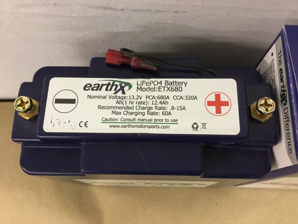 Hej Jag säljer ett styck begagnad Lithiumbatteri av typen EarthX enligt rubriken, inköptes 2015. Batteriet har suttit i en helikopter och gjorde där 20st starter. Den är i mått som ett Oddyse 680 men väger bara 1,77Kg. Den har en otrolig ström å skulle med lätthet dra en större V8 motor. Den fungerar tillsammans med en standard växelströmsgenerator men man bör ha en speciell underhållsladdare. Pris: 2000 SEK, PM;a mig Göran Nilsson