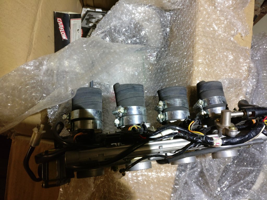 Garagerensning pågår.. Ett Sprut Oanvänt Ej komplett härva till alla givare Tändmodul ingår Kabel till programmering Det som syns på bilderna är det som ingår Finns att köpa till ett spjällhus med spridare, TPS mm TROR att det kommer från någon Sporthoj, vill minnas Suzuki GSXR 1000, men tar inte gift på det. Mikuni Sprut 5500:- Själlhus 2000:- Paketpris 6500:- prutat och klart.
