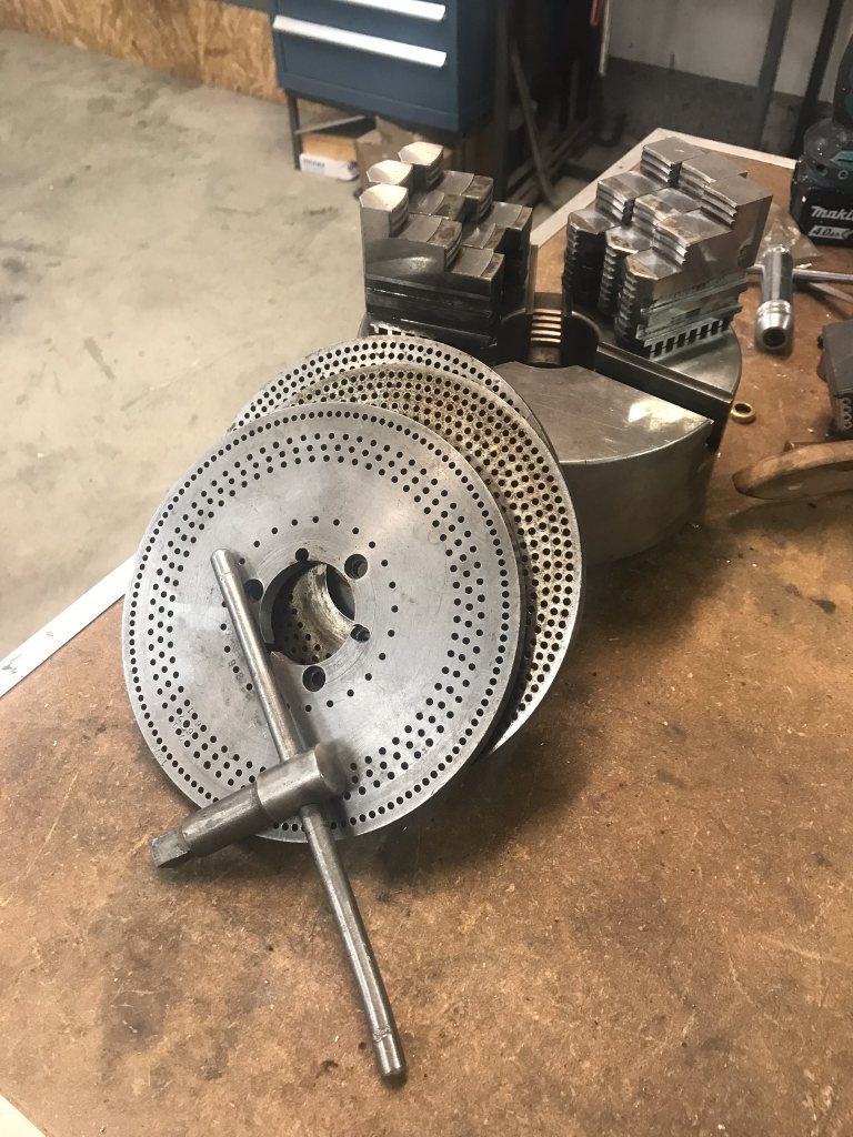 Dansktillverkad. Vihl.Pedersen.Med 4 delningskivor, dubbdocka, inner-och ytterbackar. Har haft den öppen och tcättat av allt och smörjt upp.I bra skick. Har även lite andra grejer som diverse pinnfräsar och lite passbitar i olika höjder. Kan slipa efter önskat mått om så önskas. Prisidé 6500 kr Köpare står för frakt.