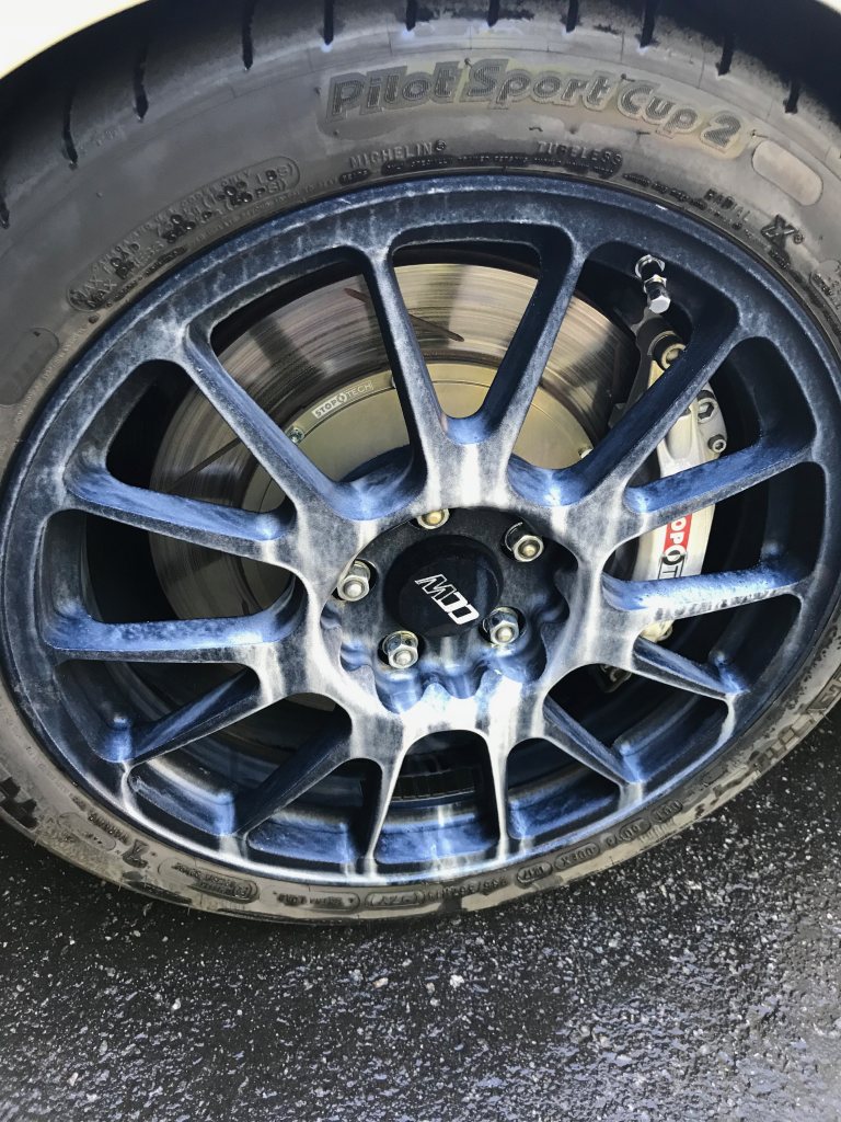 Tvättade bilen efter verkstadsbesöket, och använde en produkt för fälgar, dom blev rena och färgen åkte av också