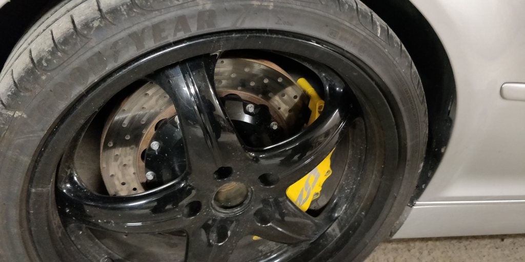 Har oken dammskydd? Och framförallt storlek på skivorna (356mm?) samt typ av ok (6 eller 8 kolvs? Monoblock?) Edit: Ser nu att det är 8 kolvs. Sitter de innanför 19" fälgar så är det högst sannolikt endast 356mm, inte intressant för min del