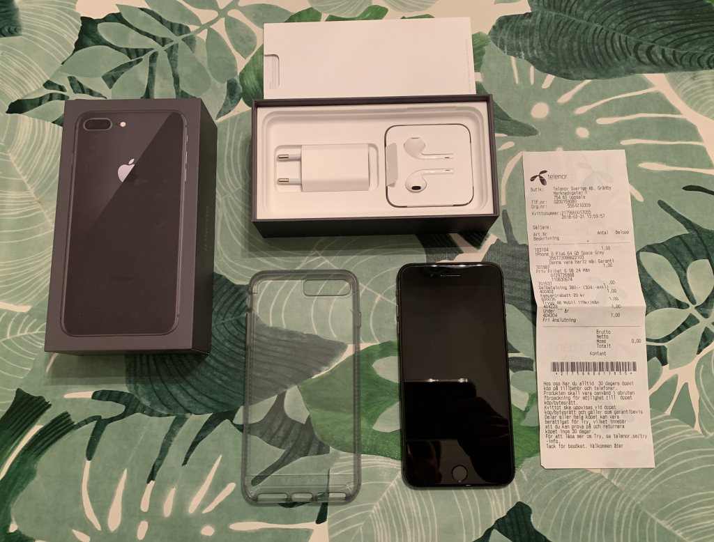 SÅLD En kanonfin 8 plus 64gb. Har haft den i fodral sen dag 1 så knappt en repa på displayen. Uttagen 180212, kvitto finns. Tillbehör enligt bild, laddare och headset oanvända. Pris 4 500 SEK, ej prutbart. Kan skickas för 70kr inom Sverige. PM eller ring, o7o1-812737 /AL