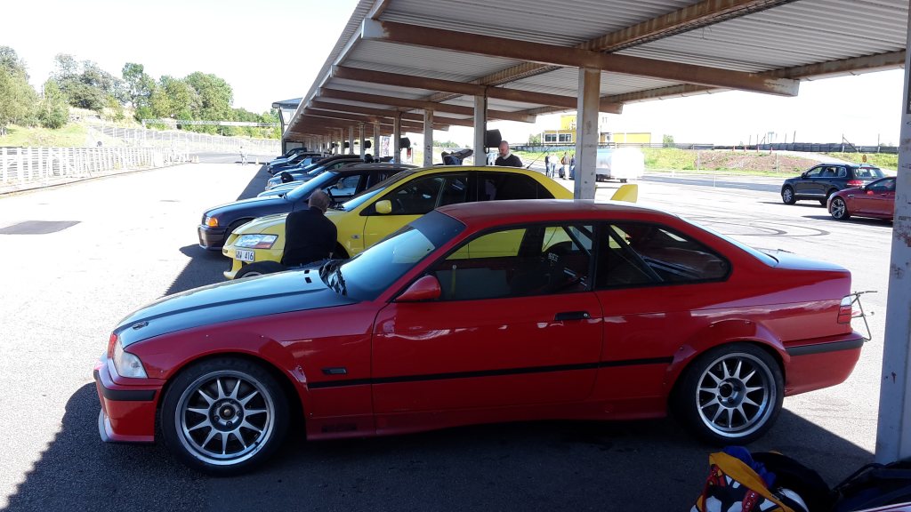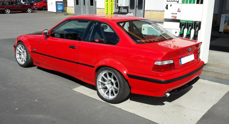 XYZ dämpare med hårdare fjädrar än vad som följer med som std. Ställbara H&R kränghämmare ATS DTC 17x9 ET -7, Federal RSR 235/40 -17, bra med mönster kvar men gamla vid det här laget.. Stålomspunna bromsslangar Pinnbult + mutter till hjulen Framvagn: Spindlar och länkarmar från Z3 M-roadster (3000 mil) samma som M3 3.2 M3 bromsar med Ferodobelägg Excentrisk polybussning i bakre länkarmsinfästningen Förstärkt framvagnsbrygga och förberedd för splitterinfästning Bakvagn: M3 3.2 diff, ombyggd bakvagn med M5 E34 drivaxlar och yttre medbringare Millway camberstag, aluminiumbussningar till bryggan, ledlager till länkarmarna Nåt rejsbelägg till bromsarna, allt pulverlackat och fästelement ytbehandlade. Förstärkt infästning i karossen och jag har för mig att jag förstärkte kränghämmarinfästningen i bryggan också. Motor från Z3 -98, 13700 mil. Ovanlig då denna har stålfoder men enkelvanos. Tror att dom endast fanns från mitten av -98 tills dess att M52 med dubbelvanos infördes sent -98. M20 svänghjul, ny sachslamell och -618 tryckplatta. Borttagen EWS. ZF låda från Z3 3.0 10000mil. M3 3.0 kardan med typ nytt stödlager och CV-knut. Har säkert glömt en massa saker, men den har fått kärlek under min och Marcus ägo. Jag har kört som snabbast 1:02.28 på Kinnekulle med M42 och gamla slitna r-däck. Körde 1:08.nånting första gången jag testade Sviestad, också med M42 men med Federaldäcken. Ej reggad med motorn men allt är förberett för SFRO. *SÅLD* _________________ /Mvh M|cke F@.gner |