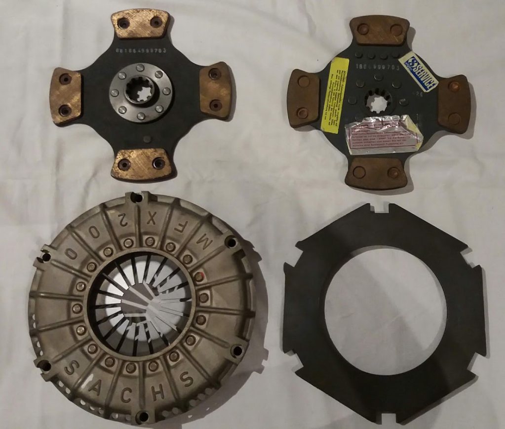 Ny (NOS) Sachs MFX200 1-skivig sinterkoppling (400NM) med BMW M10 svänghjul. Medföljer 2st nya lameller med 23x29x10 splines. Kopplingen väger 3,1kg med lamell och svänghjulet 3,9kg.