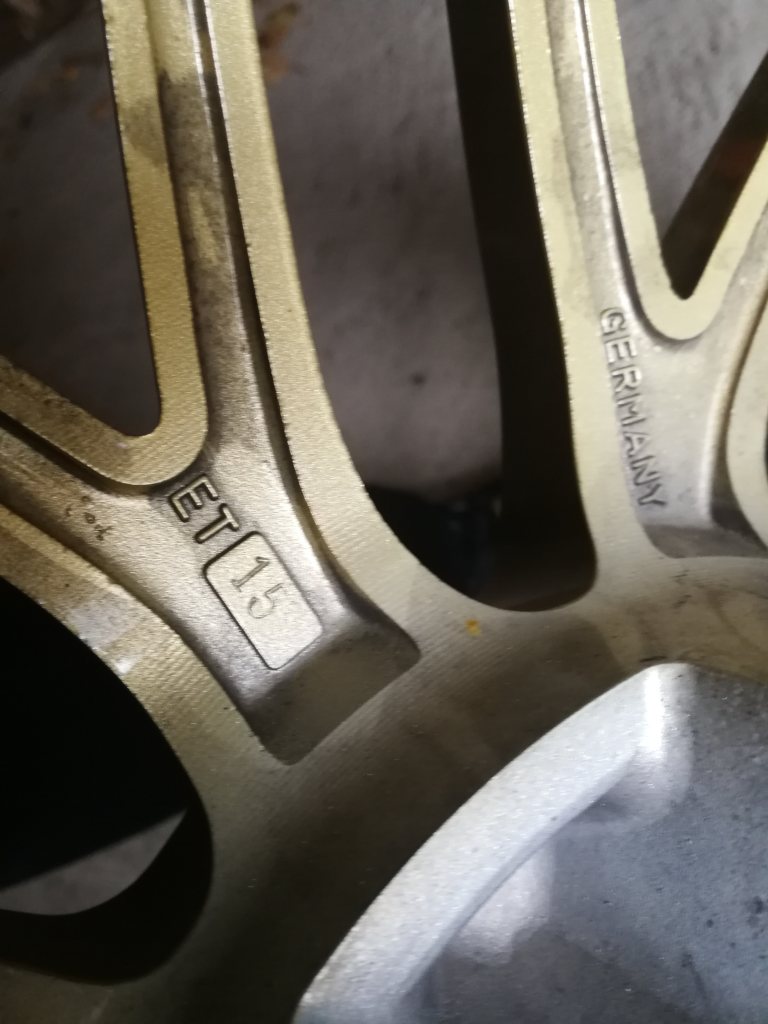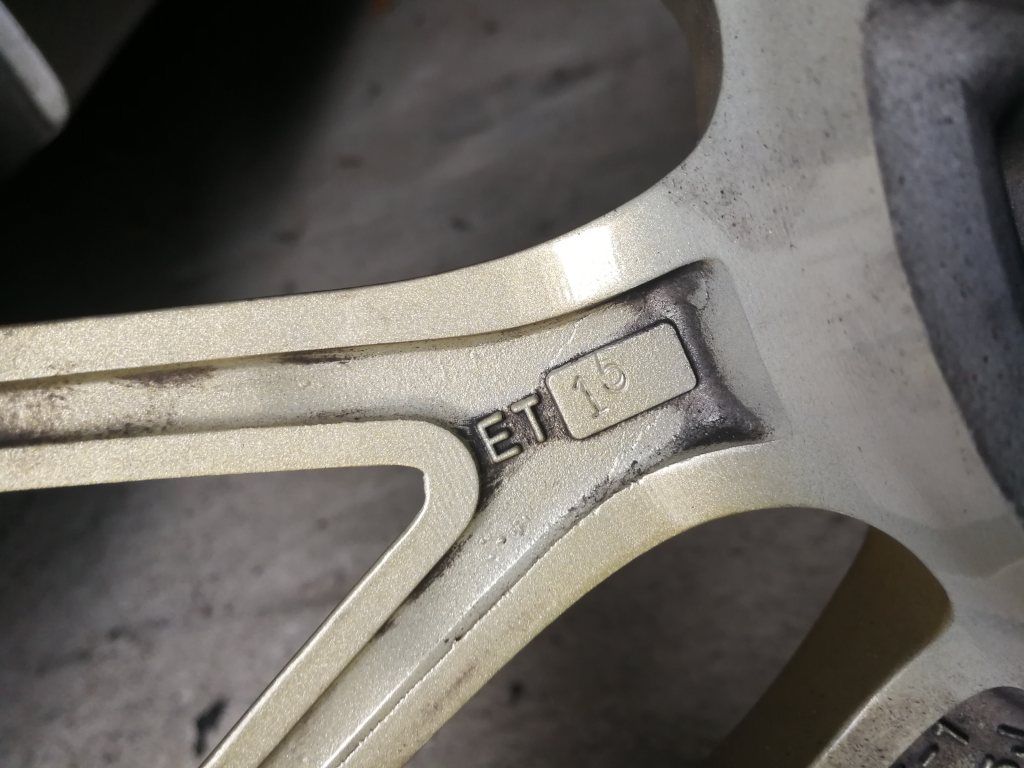 Hej Torbjörn Det är ET 15 både bak och fram runt om på alla fälgarna och på alla bilderna Skruvade av fälgarna för att fota insidan Bilder från vänster sida.