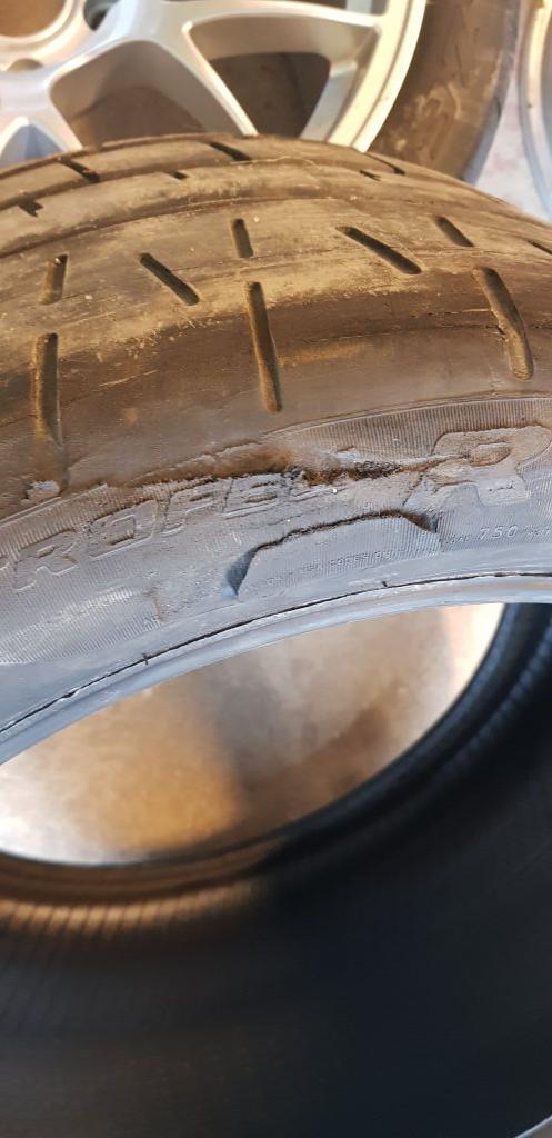 skrap emot betongvall. Fälgen fick sig en buckla på samma ställe men såpas lite så att det fortfarande höll tryck. Så omöjligt och säga om det tagit skada eller inte. Har frågat flera gummihandlare och alla säger att det troligtvis inte är någon fara med tanke på att de bara är i själva gummit men ingen kan ju garantera att det kommer hålla i 250 km/h heller. |