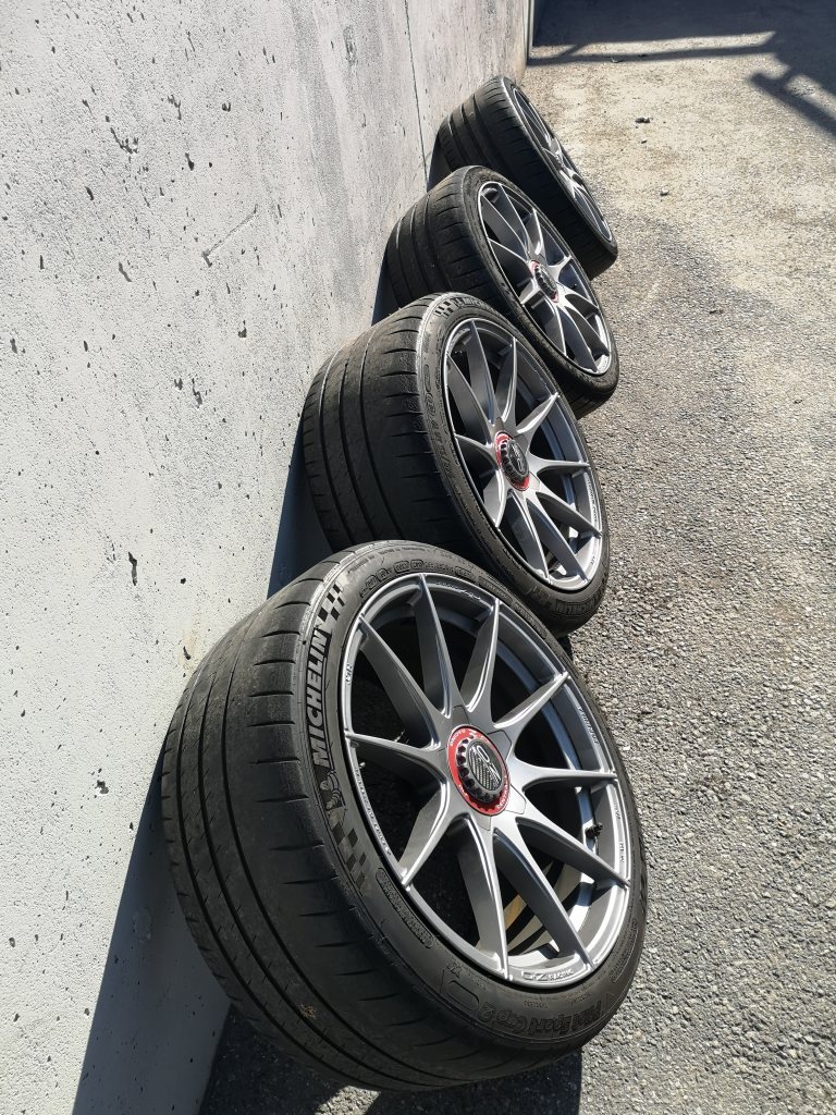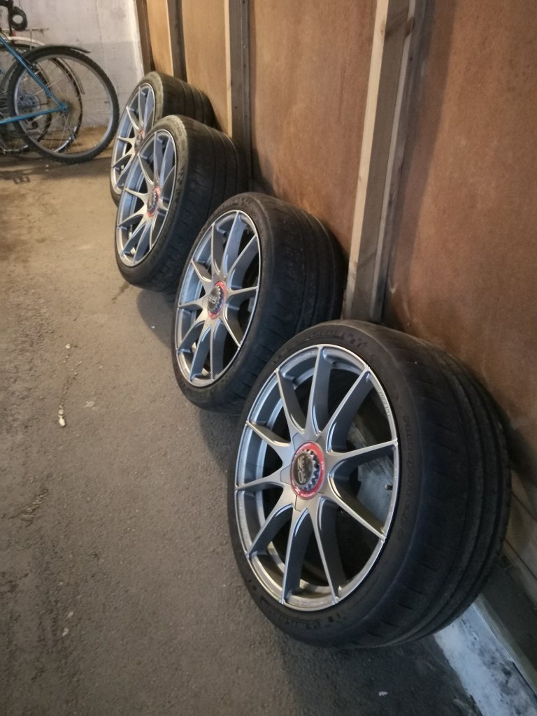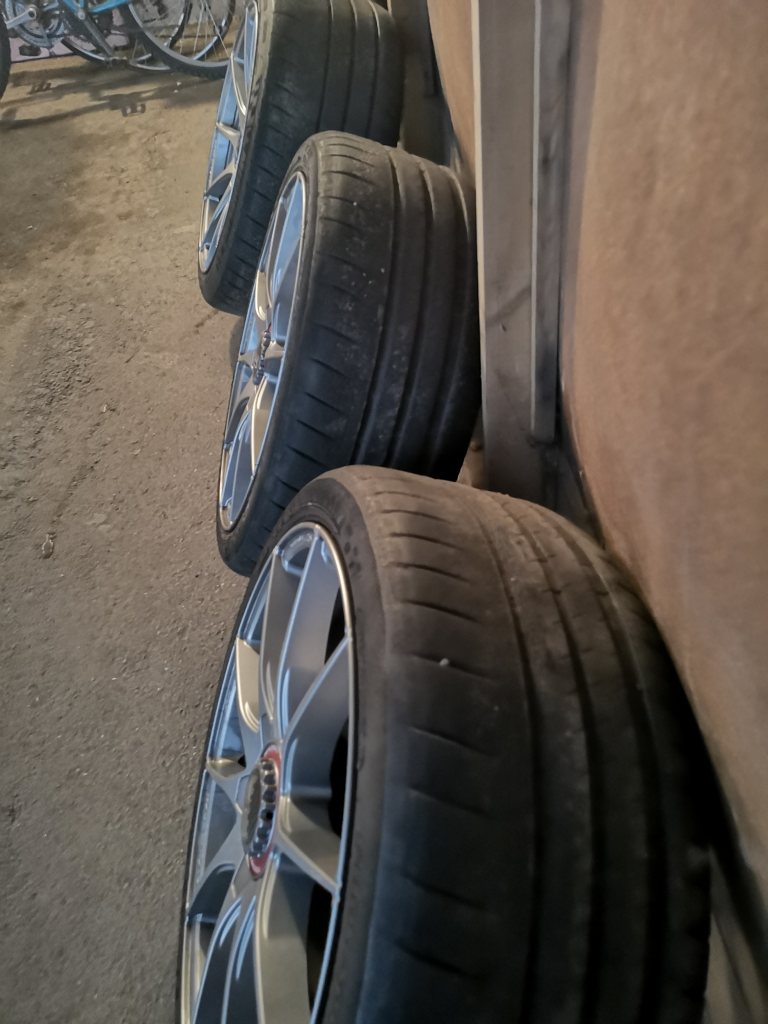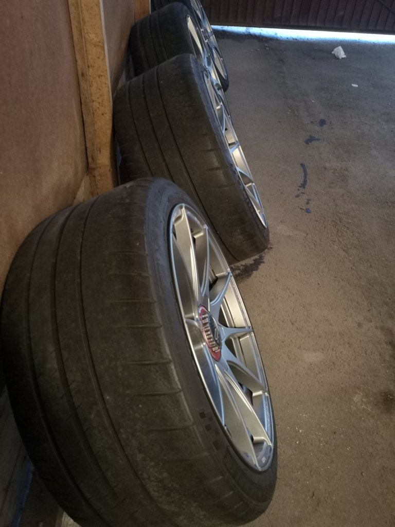 Lätta kvalitetshjul till BMW Inga kantskrap eller skador. Passar E9x M3, 1M mfl Med Michelin pilot sport cup 2 Dimensioner: Fram: 9x19 ET: 31 med 245/35 (4 mm kvar) Bak: 10x19 ET: 25 med 265/35 (4 mm kvar) Bultcirkel 5/120, Nav 72,6 10000 kr