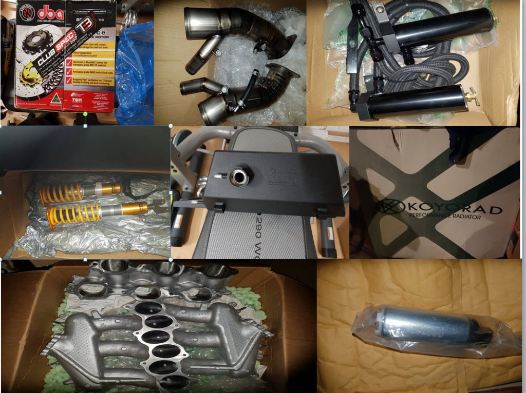 Nya och beg. GT-R delar säljes alla priser + frakt Ny Koyo större bättre kyl ink. thermostat : 6000 sek Nya Walbro GSS342 bensinpumpar x2 : 1300 sek Nya bromskivor fram DBA kompletta : 7000 sek Nya Bromsbelägg fram Hawk HPS : 1500 sek Ny Forge glykoltank svart : 2500 sek Beg Insugsrör turbo Mines Titan : 6000 sek Beg Insugrör turbo Linney alu : 2000 sek Beg Oilcatch tank för GTR : 4000 sek Beg OEM GTR turbos : 6500 sek Beg Öhlins dämpare GTR : 14500 sek Beg Linney AWD controller : 5500 sek http://www.linneytuning.com/product/ Beg Uppgraderings turbos GTX2871 i oem hus : 28000 sek Ny Whifbitz intercooler : 5500 sek Beg cd/dvd spelar front kolfiber : 1500 sek Ny kolfiber overlay mittkonsoll/ac : 700 sek Nya Whiteline bussningar KCA403 Front Control arm - upper bushing https://www.whiteline.com.au/product
