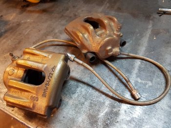 E36 framok i vettigt skick ink stålomspunna slangar. 500:-
