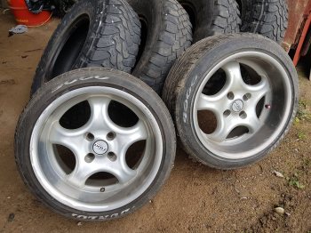 Har 4 uppsättningar fälgar och lite annat över. Däcken som sitter på ingår. BBS RC 042 17x7,5 et38 (utan kåpor). Har gått några säsonger efter renoveringen. 4000:-