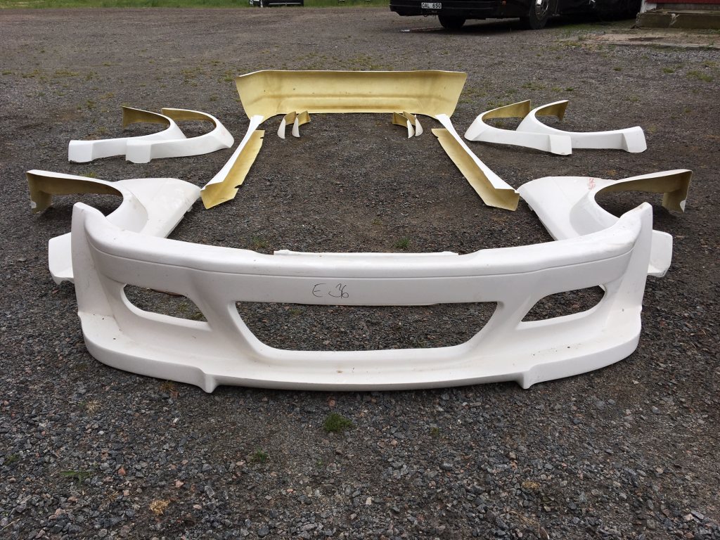 Säljes nytt komplett GTR widebody kit till BMW E36 4-dörrar. Kitet är i glasfiber och består av Front, grill, framskärmar, sidokjolar, bak breddare samt kofångare bak. Kommer från Pesch Motorsport 6900kr