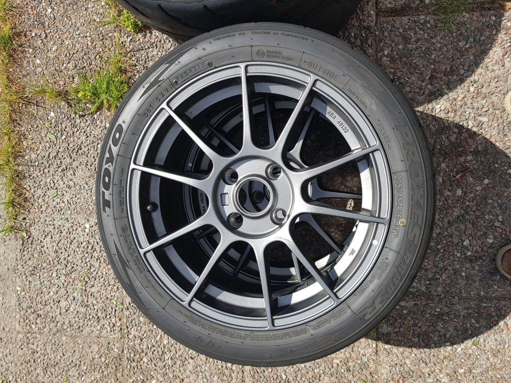 SÄLJES: 16" fälgar (Autec Wizard 4/108 ET37) med Toyo R888R däck, 205/45 R16. Hjulen har gått två trackdays på Gelleråsen. Passar bland annat Ford Fiesta ST. Prisförslag: 7000:- Hjulen finns i Stockholm. Skicka PM så ringer jag upp,