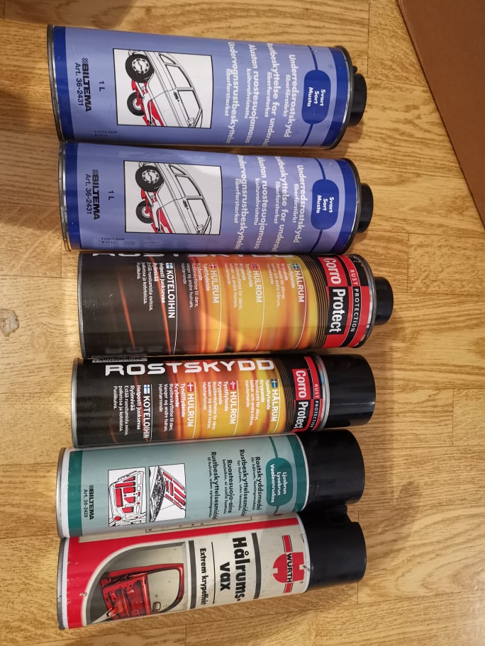 Har lite grejjer över från verkstan som jag nog aldrig kommer att använda. Det är lite blandat, synd att slänga. Finns i Kungälv. Biltema Dexron 2/3 olja, 20 kr Biltema framgaffelkolja, SAE5, 900 ml kvar, 20 kr Spectro framgaffelolja, 20w20, oöppnad, 20 kr Castrol Super TT, 2taktsolja, ca 500 ml kvar, 20 kr MPM Dexron 3 F/G, 50 kr GM (Saab/Opel) Grön Växellådsolja, 800 ml kvar, 50 kr 100 kr för dessa tre VAG Glykol, 3 kg koncentrerad, VAG Glykol utspädd till -14C, ca 4 liter VAG Kylarvätska, färdigblandad i vit flaska Rostskyddsmedel, 200 kr för alla på bilden 3 st 1000ML för sprutning/pensling 3 st för sprayning