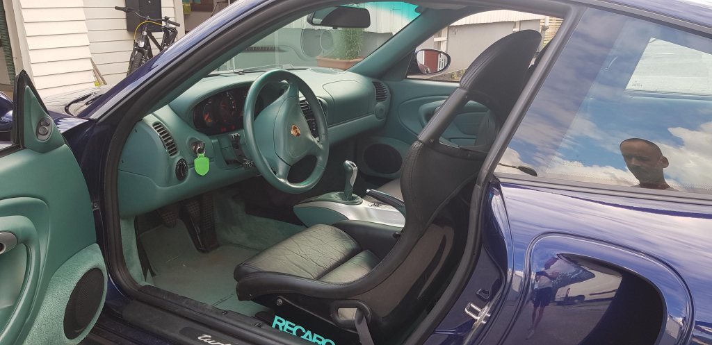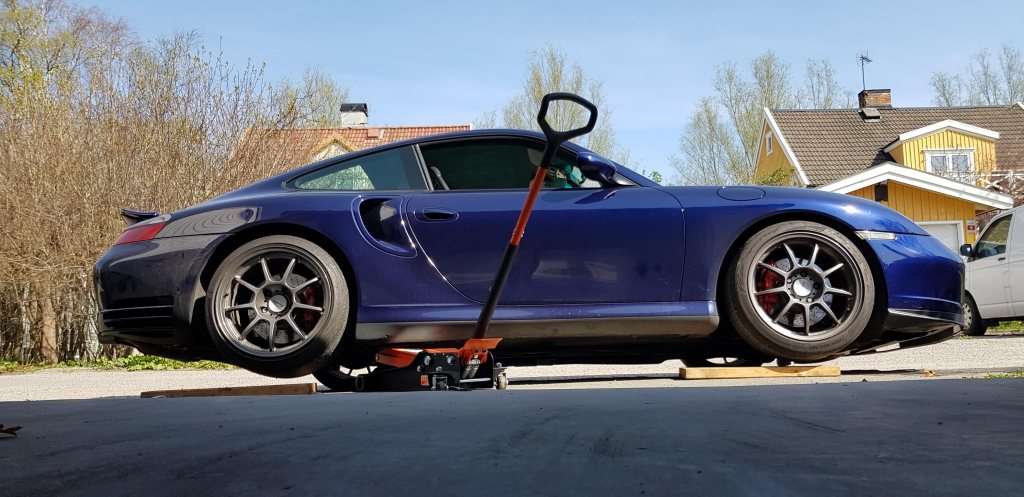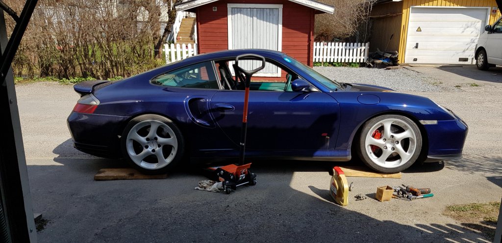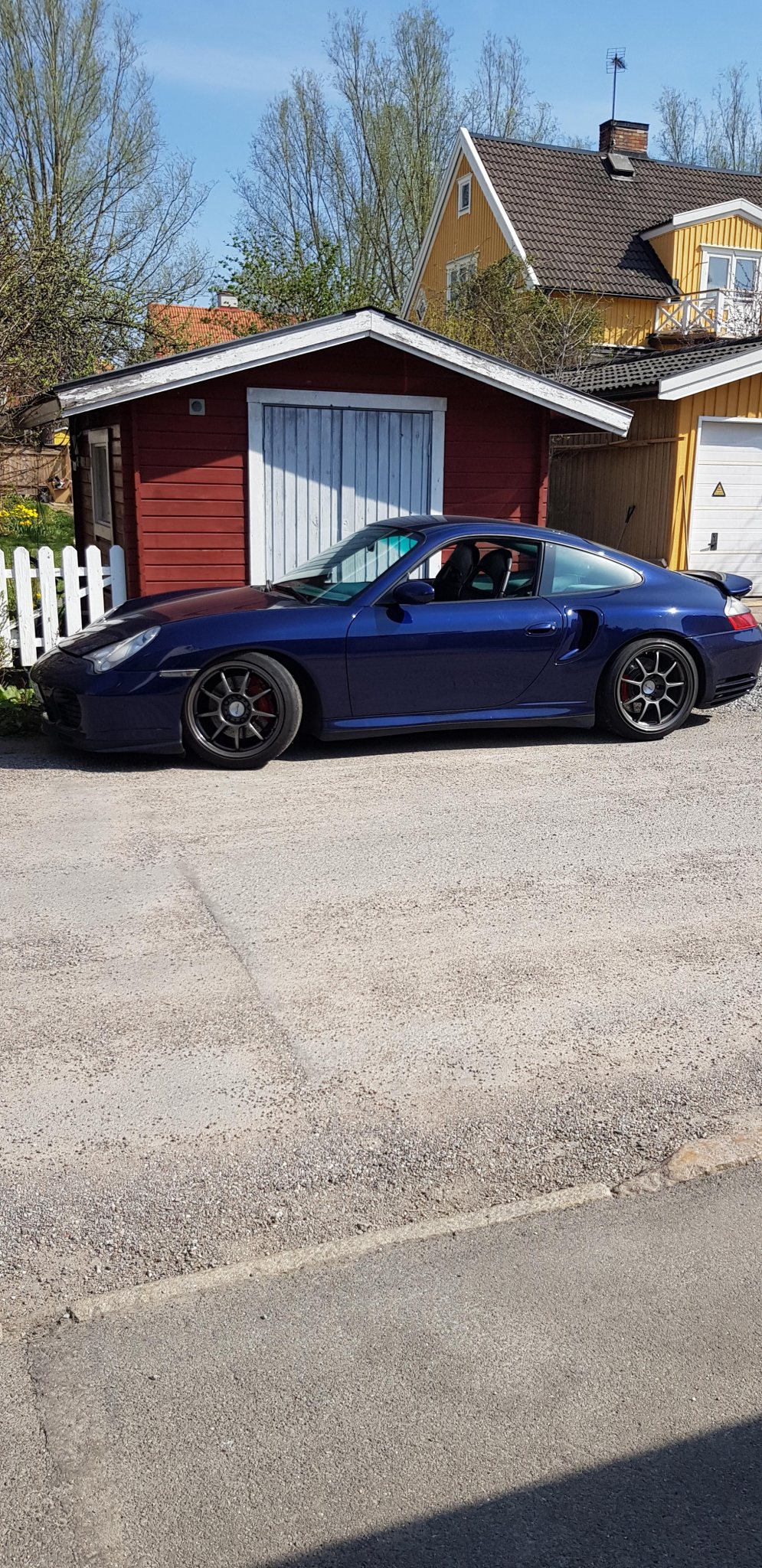 2001 Porsche 996 turbo Lapis Blau exteriör med Nephrite Grün interiör Två tidigare ägare i Italien, importerad av mig 2012 6 650 mil Manuell växellåda Ingen taklucka Originalfälgar, de lätta hollow spokes (men ej i toppskick) med Toyo 888 Låg skatt, 2413 SEK / år! Nybesiktigad utan anmärkning för 1 vecka sedan 1 580kg i tjänstevikt vid registreringsbesiktning 2012, nu betydligt lättare Alla originaldelar finns +extra dörrsidor bak i svart skinn +bromsscoop 997 gt3 +hjulpinnskruvar +Ej monterad Aero lip fram (kopia) +997 CUP-ratt (OMP) med nav från Momo och resistor istället för airbag så lampan inte lyser +OZ Alleggerita 18" i GT2-spec, 8,5" fram och 12" bak med dåliga Michelin Cup +En uppsättning nya ej monterade Pirelli Trofeo R i 235/40 och 295/30 Mod: -EPL mjukvara, laddar 1.0bar, nu närmare 500hk och finfin respons -Tubi Style avgas med sportkattar -Konverterad till bakhjulsdrift med GT3 spindlar fram och borttagen kardan + drivaxlar -CUP topplagringar fram -GT3/CUP LCA fram (undre bärarmar för att justera för mer camber med shims) -CUP justerbara toestag bak -GT3 justerbara krängningshämmare fram + bak -H&R 60 mm fjädrar 90N fram / 140N bak -Bilstein MDS stötdämpare för 997 CUP runt om, racedämpare som kostar kring 20 000 SEK styck. (Bilstein MDS (Modular Damping System) dampers are a premium motorsports product designed for professional road racing. The 2-way independent compression and rebound adjustment system provides 100 different setting variations for the ultimate in handling performance.) -964RS LWFW (lätt svänghjul) -997 GT3RS 4.0 koppling -997 CUP diff/lsd -Rear subframeupphängning med alubussningar -PFC 08 fram + bak -GT3 skivor fram -GT3 original Recarostolar i svart skinn med original GT3 Recaro underreden och infästningar -GT3 center console delete -Lithium-batteri på 1,6kg som lätt startar bilen men givetvis kan den inte stå längre stunder utan att koppla från batteri eller underhållsladda 450 000 SEK Önskar man komma ner i pris ännu mer så kan köpa med originalstolarna monterade och utan Recaro + OZ + Pirelli. Då försvinner nog 30-35 000 SEK till. Den gröna inredningen kommer som bonus men det är billigare att byta den till svart än att göra alla andra moddar kan jag lova samt att bilen endast gått 6 650 mil. Eller så utvecklar man den vidare som time attack-bil! Hör gärna av er med frågor eller för diskussion via telefon, mail eller PM. bengter.tom (snabel-a) gmail.com Noll Sju Två - 144 02 13