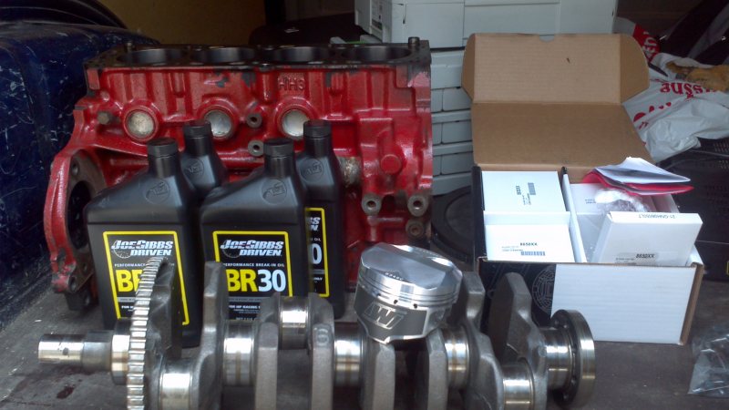 Idag hämtade jag ut lite saker från Verkstaden igen. Uppborrat block, balanserad vev m.m. och nya kolvar!
